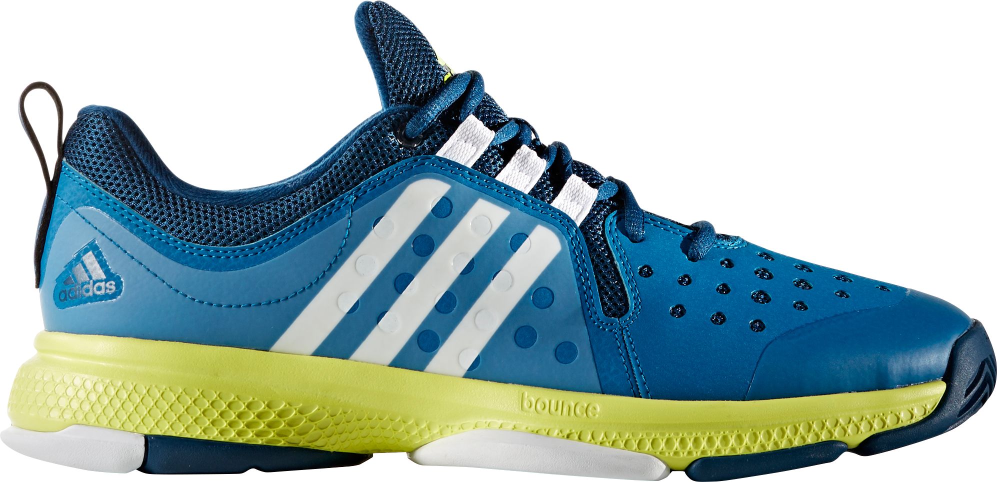 Built for long-lasting durability, the adidas® Classic Barricade Bounce tennis shoe is the ideal choice for superior comfort. An engineered mesh upper with added support systems increase comfort by wrapping your foot and increasing airflow. The ADIPRENE® + cushioning system in the forefoot allows for a smooth toe-off, while the BOUNCE™ technology throughout the midsole increases responsive cushioning and all-over flexibility.