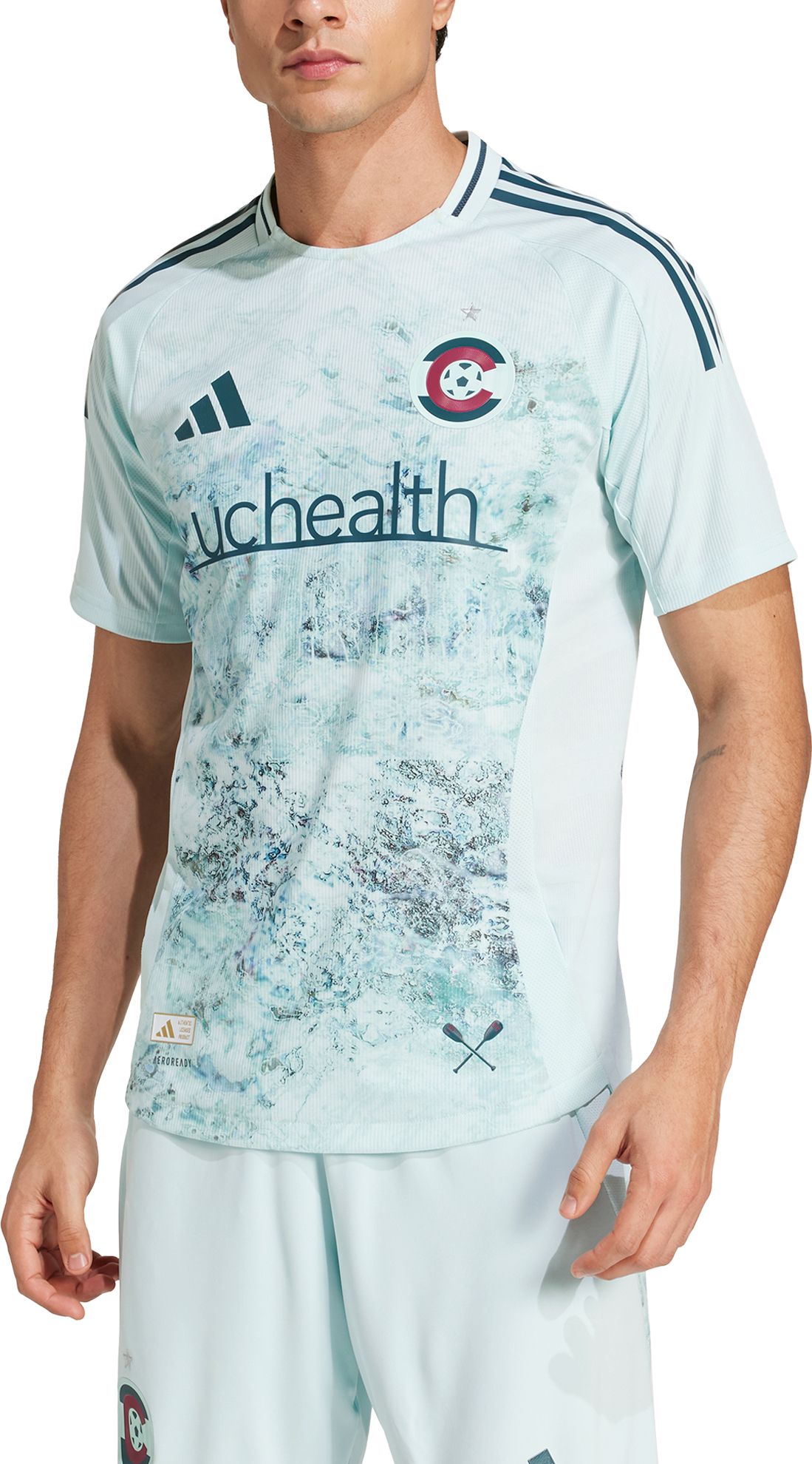 Roll with the Rapids in football style. The dynamic print on the front of this adidas authentic jersey captures the boundless energy of Colorado's rushing rivers. Engineered for on-pitch performance, the shirt features moisture-managing AEROREADY and a lightweight heat-applied badge. Two eye-catching sign-offs top up the nautical theme.This product is made with 100% recycled materials. By reusing materials that have already been created, we help to reduce waste and our reliance on finite resources and reduce the footprint of the products we make.