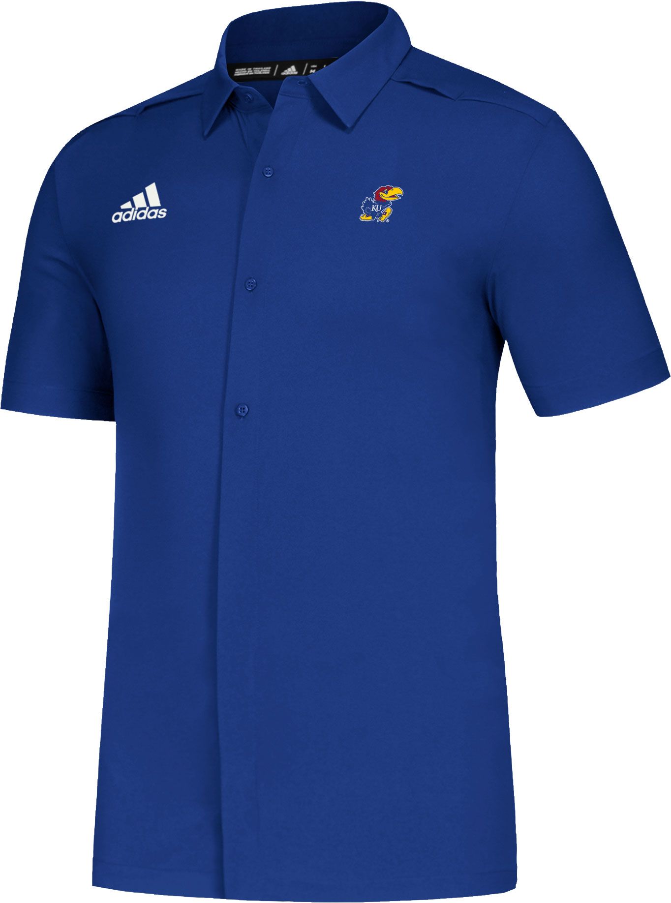 adidas Men's Kansas Jayhawks Blue Game Mode Full-Button Sideline Performance Polo