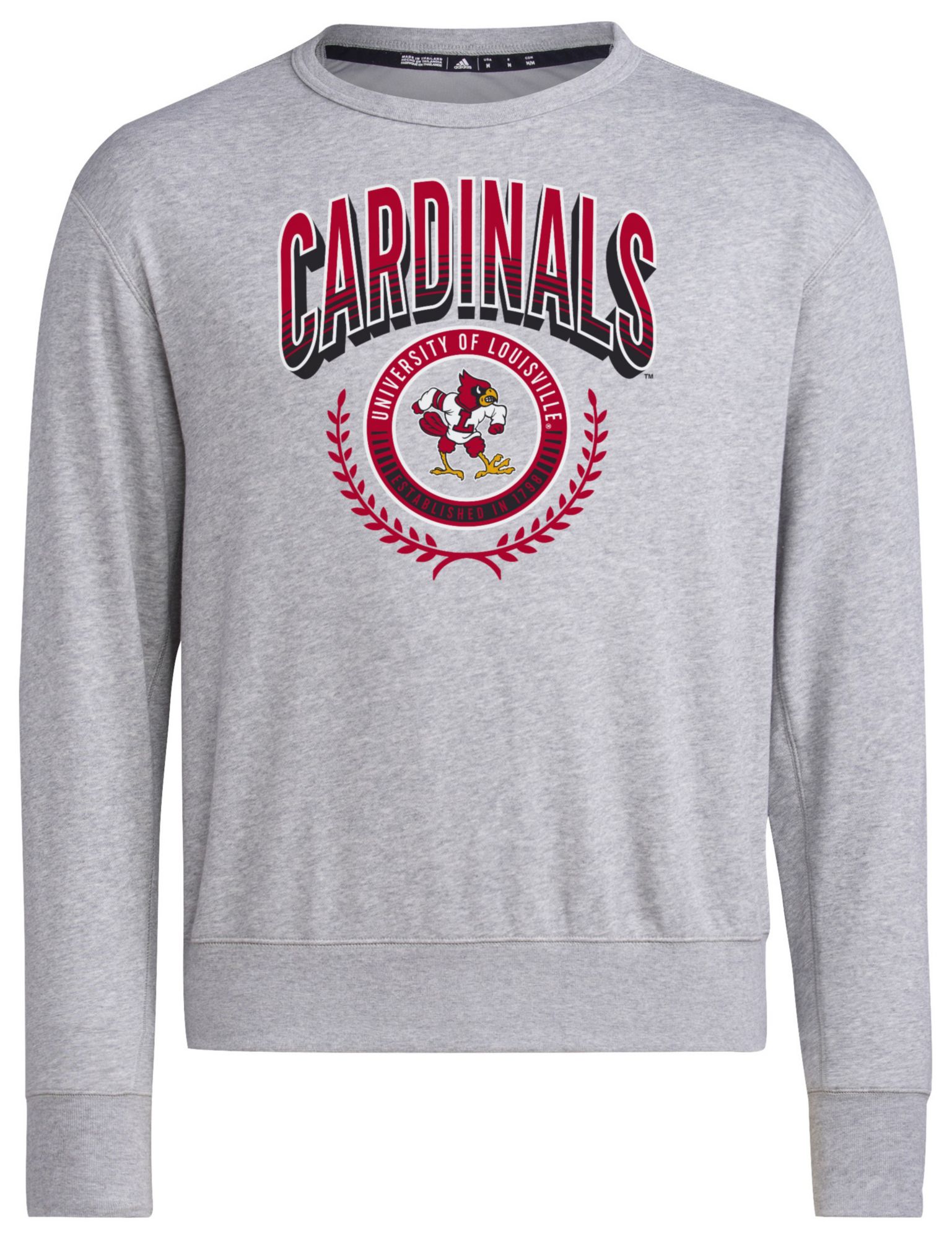 adidas Men's Louisville Cardinals Grey Vintage Pullover Crew Sweatshirt