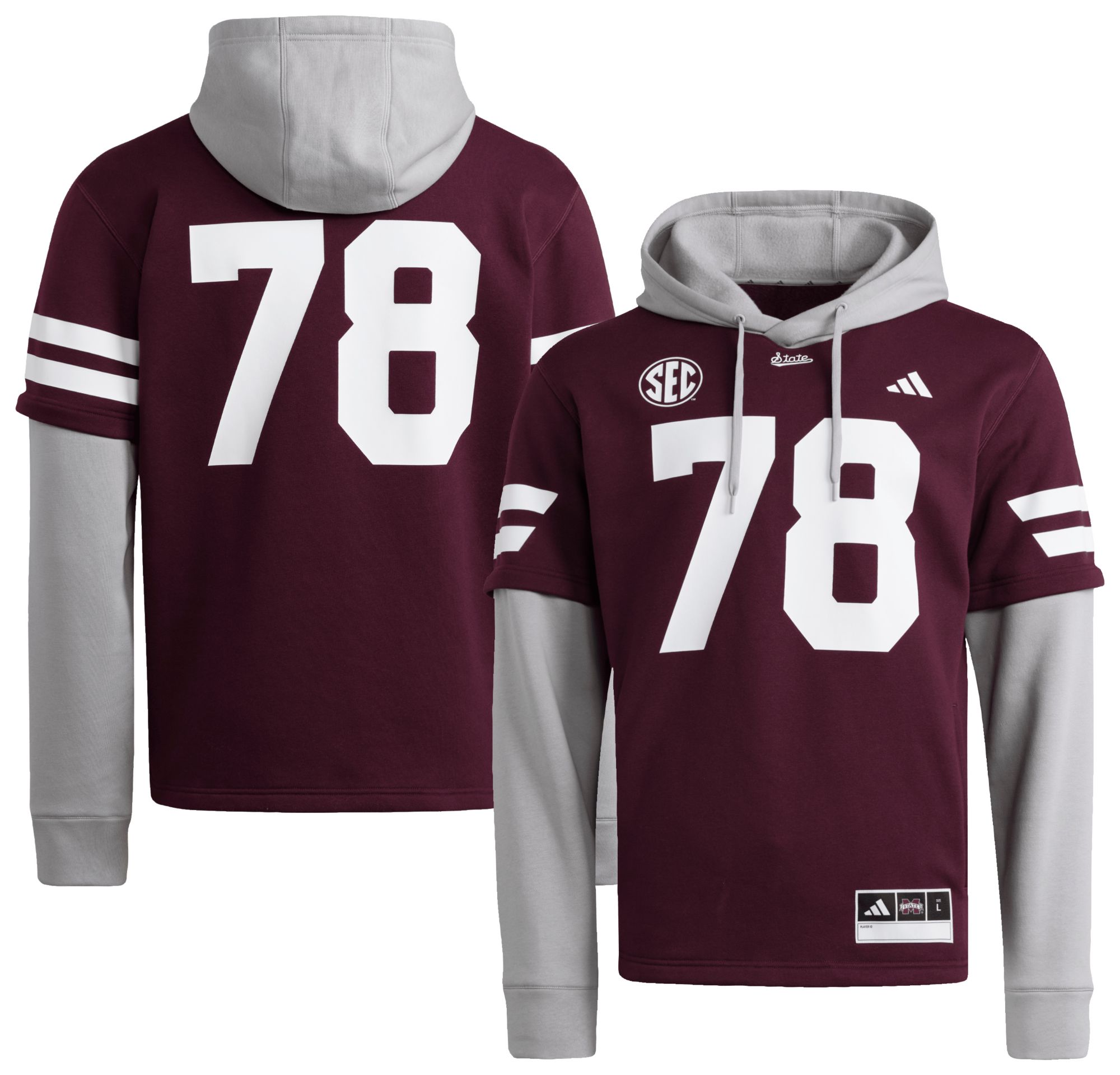 adidas Men's Mississippi State Bulldogs #78 Medium Red Hooded Jersey