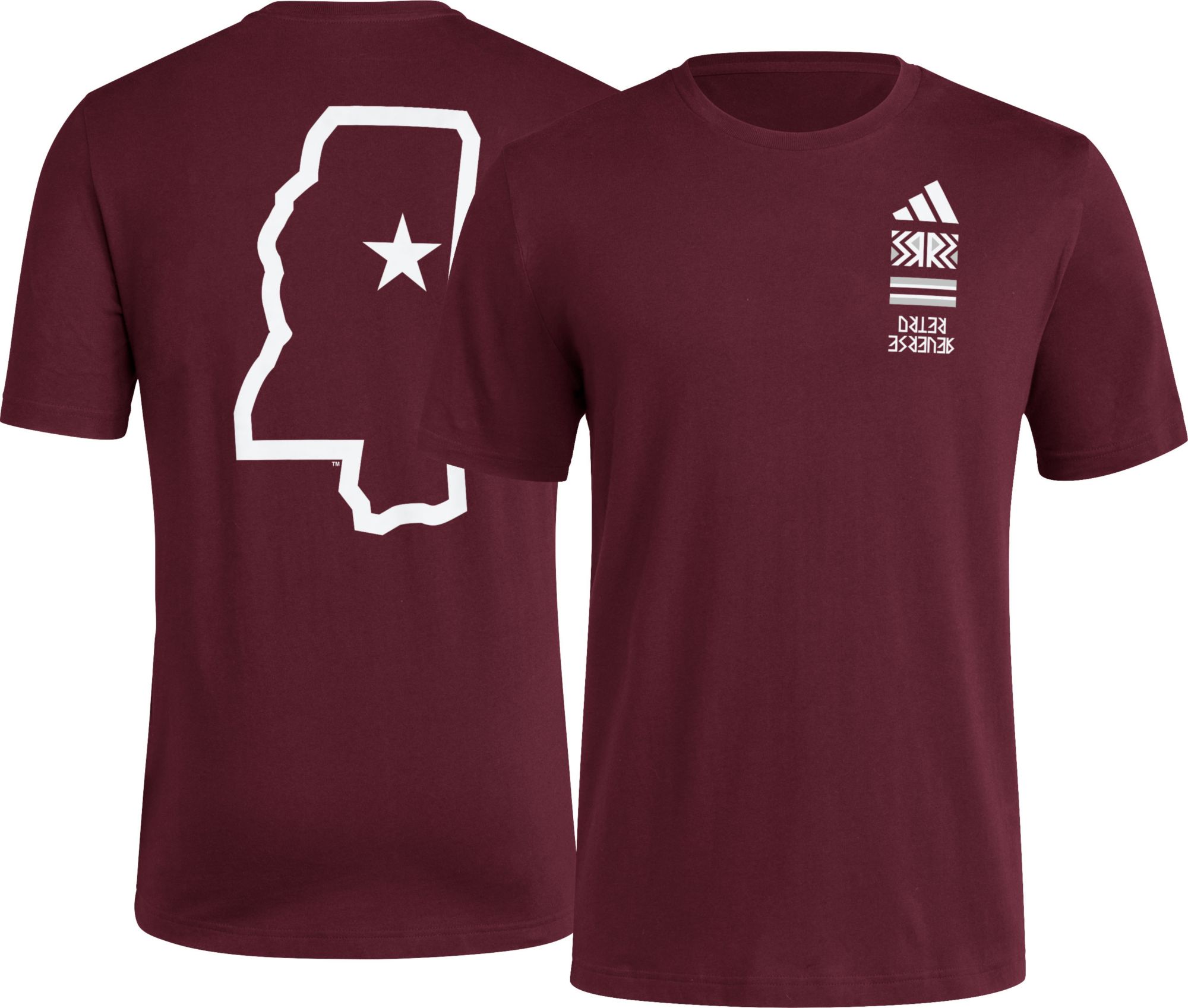 adidas Men's Mississippi State Bulldogs Dark Red Reverse Retro Basketball T-Shirt
