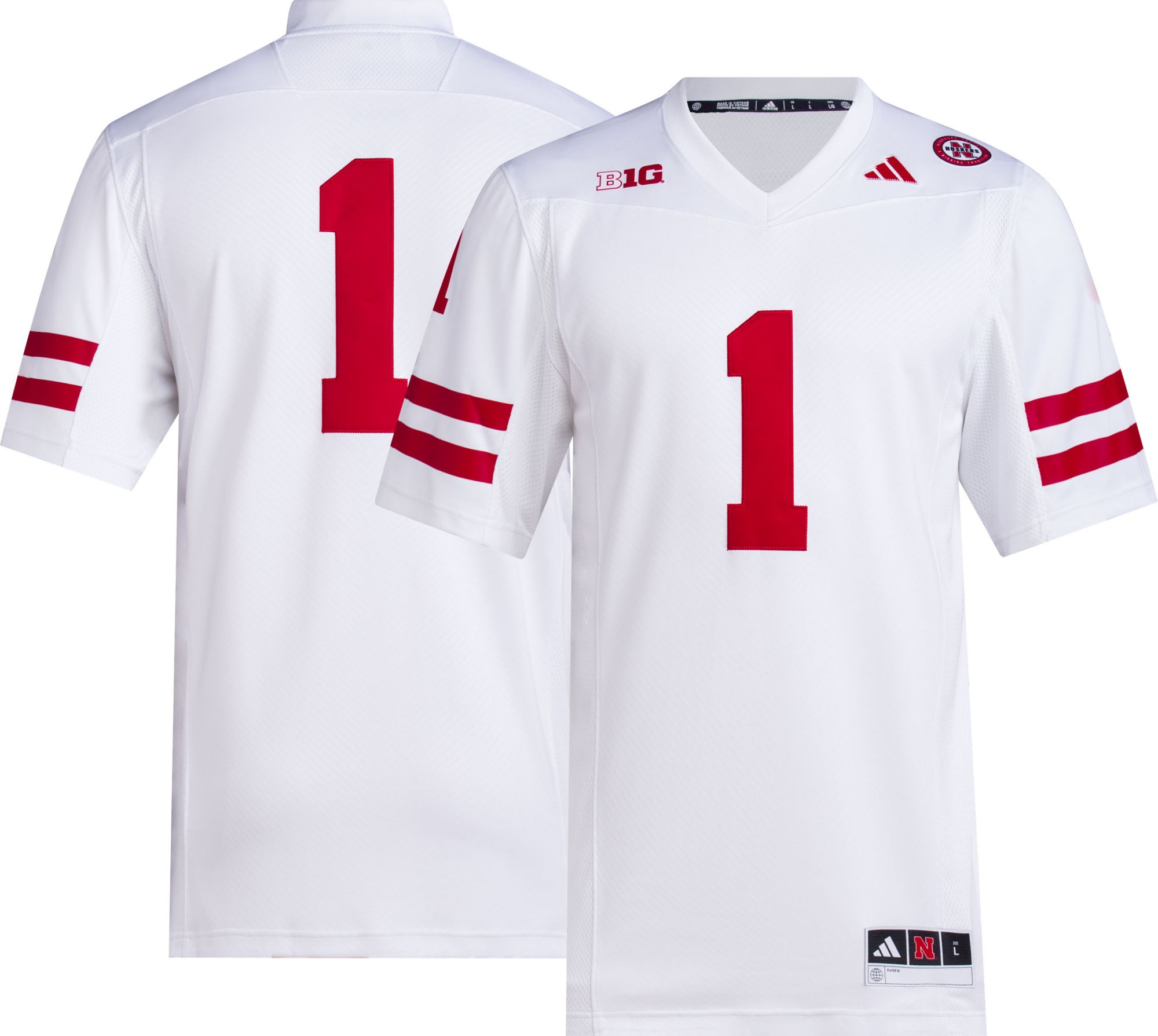 While the jersey is nice I wish the winning tradition & B1G patches were embroidered like the numbers and not heat pressed on. Otherwise it’s a nice jersey