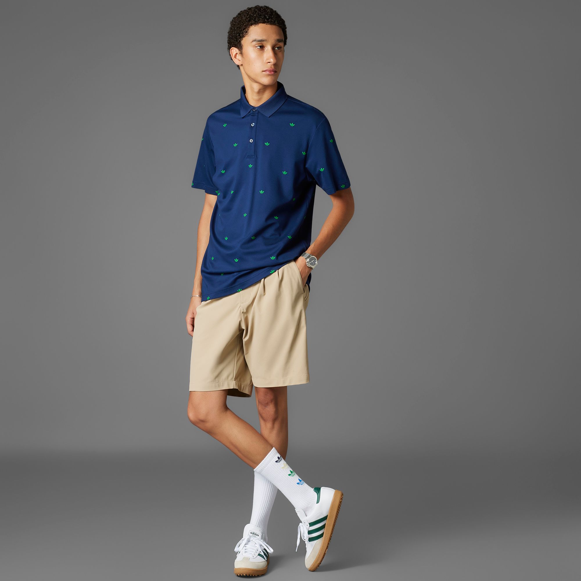 Bring heritage sports style to your round in this adidas golf polo with an allover print of tiny Trefoils. The soft cotton blend delivers all-day comfort from the course to the clubhouse.