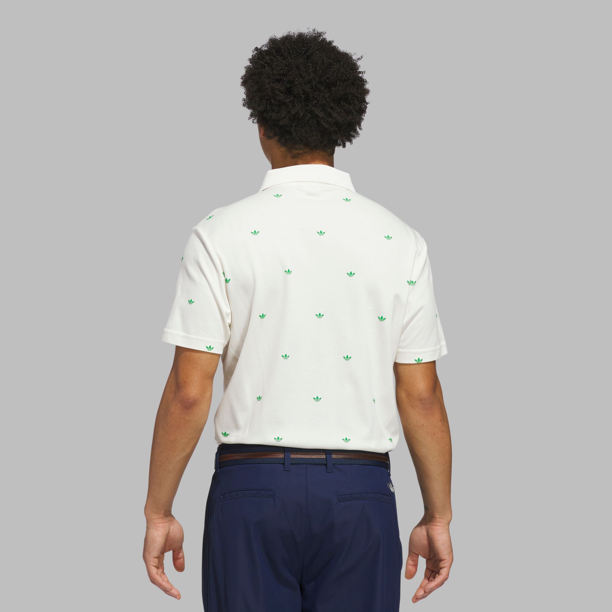 Bring heritage sports style to your round in this adidas golf polo with an allover print of tiny Trefoils. The soft cotton blend delivers all-day comfort from the course to the clubhouse.
