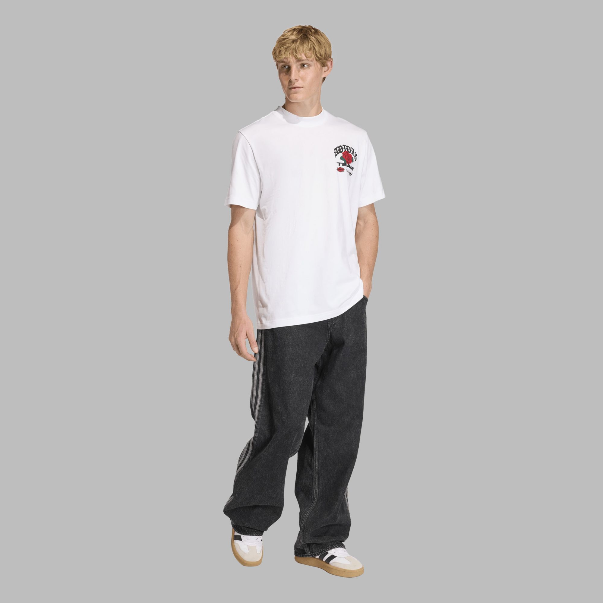 The Roses Graphic Tee brings a touch of elegance to your casual wear. With its loose fit and round neck, this tee offers comfort and style in equal measure. The knit construction ensures a soft feel, making it a go-to piece for any occasion. It's inspired by the 1994 World Cup for those who appreciate a blend of sport and style.