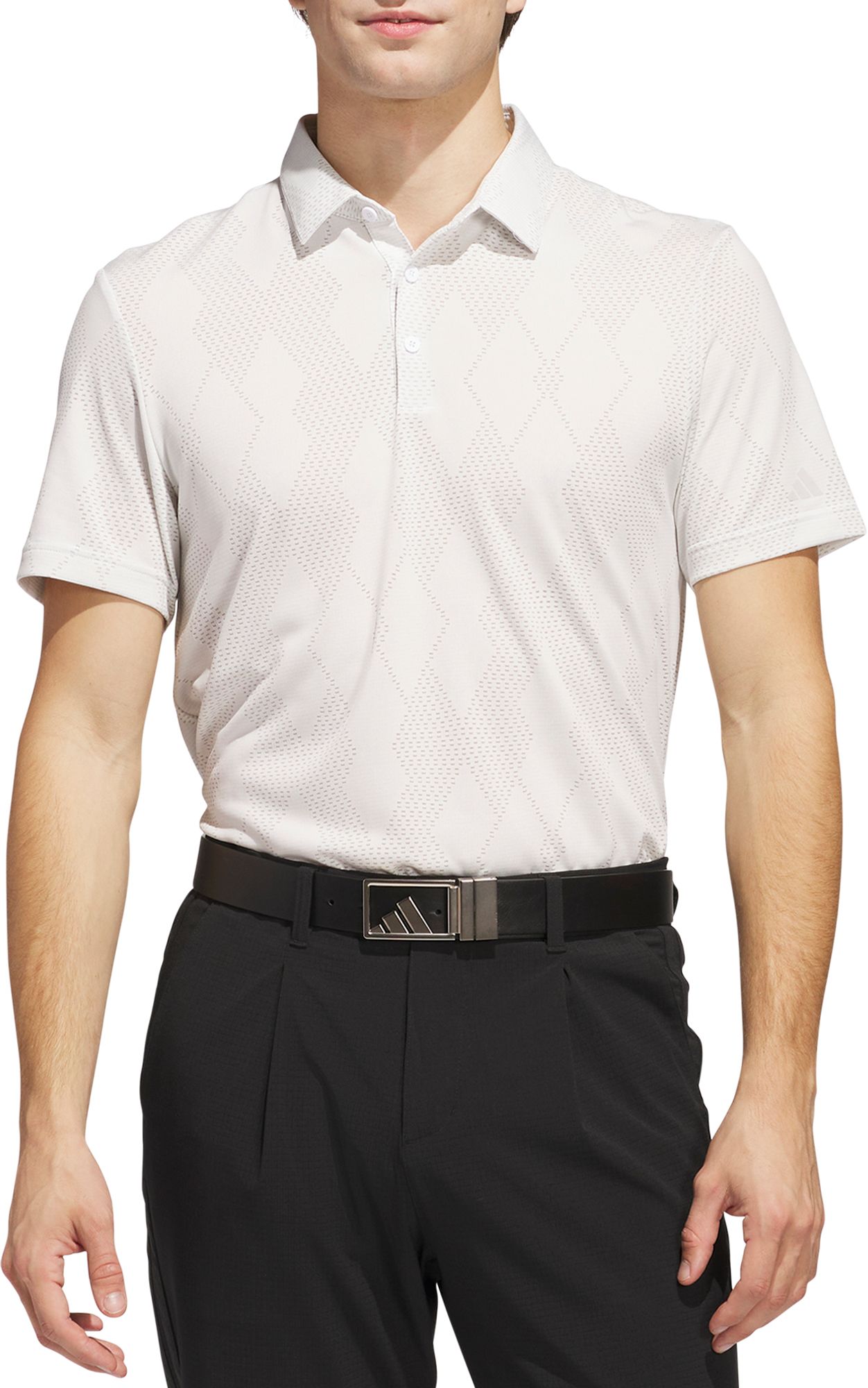 For casual rounds and competitive play, this adidas golf polo offers fresh style without compromising performance. Plenty of stretch ensures easy mobility while the subtle texture and all-over print update the traditional golf top with a modern touch.