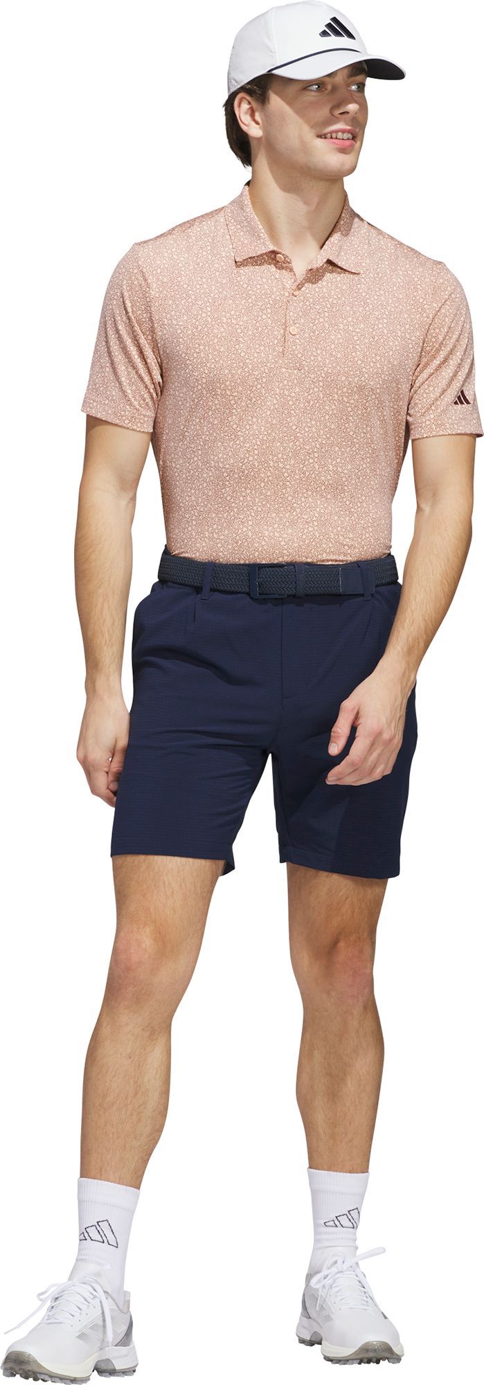 Play your best round in the lightweight comfort of this adidas golf polo. Breezy single jersey with plenty of stretch supports your game from first drive to final putt. The subtle allover print delivers fresh course style.