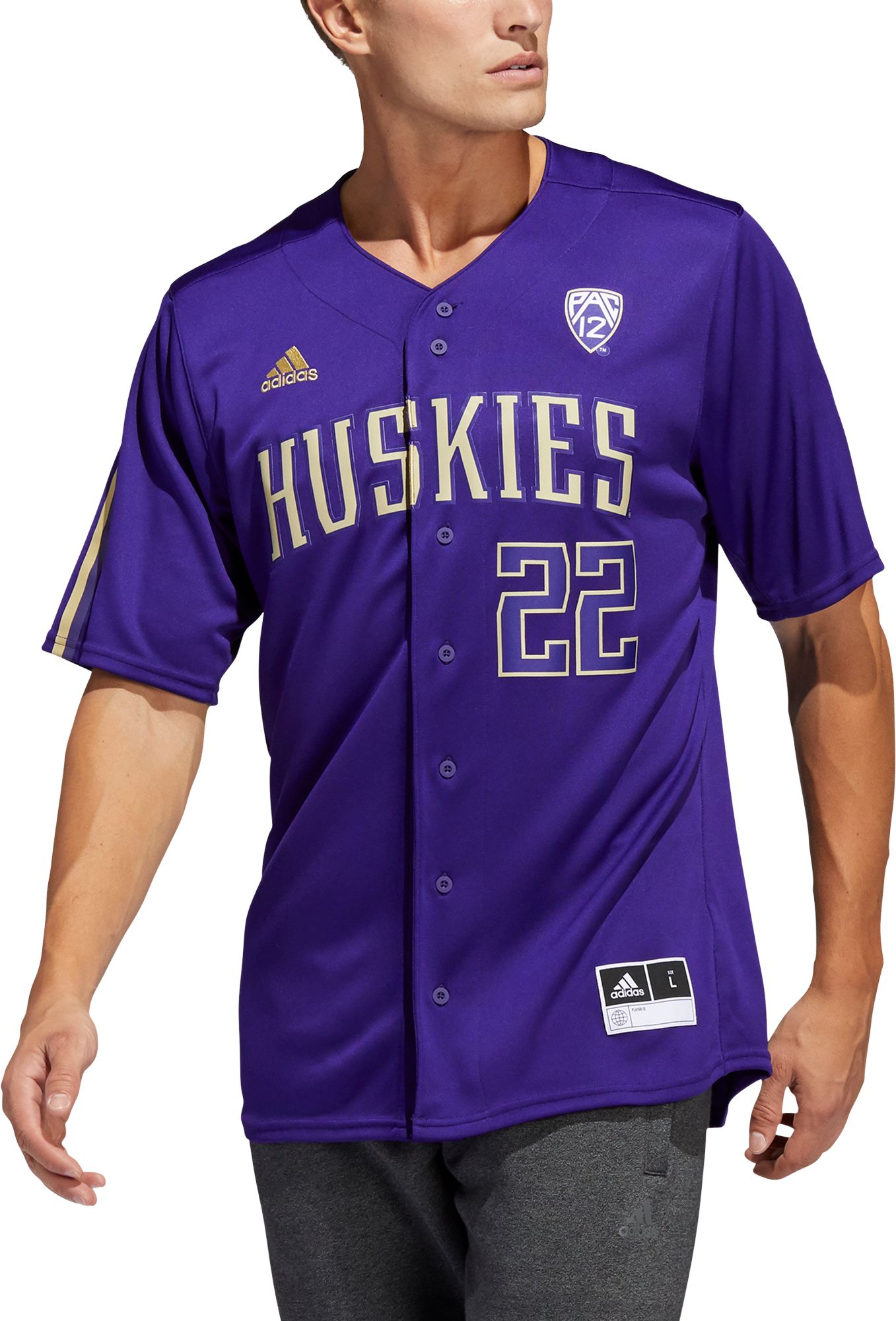 adidas Men's Washington Huskies Purple #22 Replica Baseball Jersey