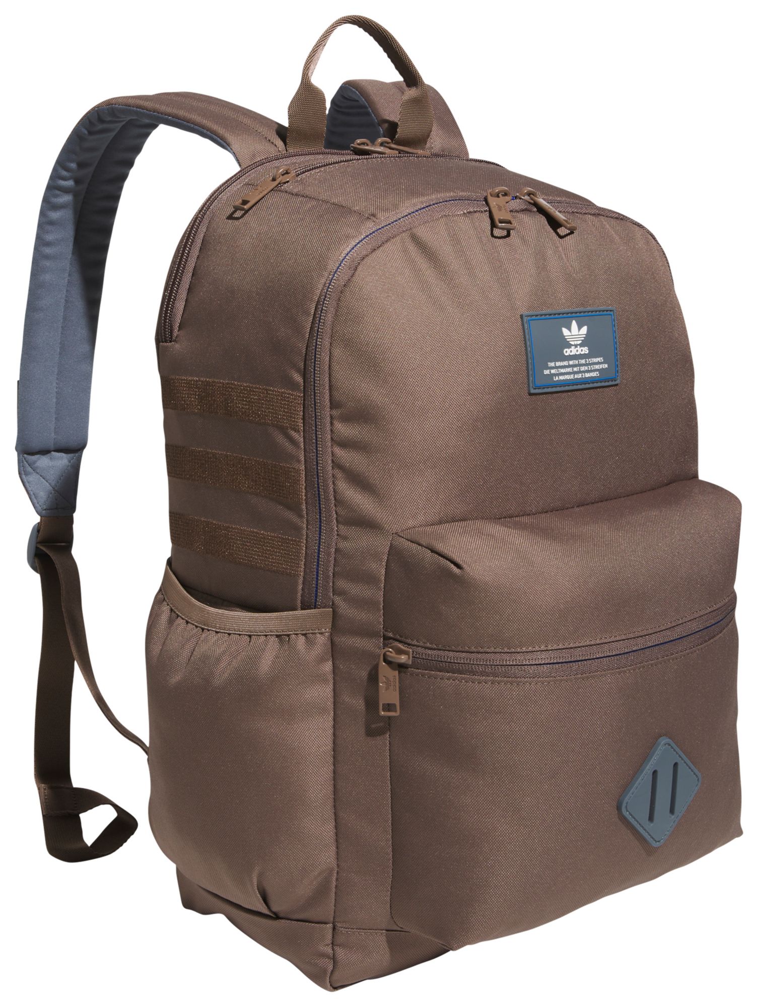 This adidas backpack provides on-the-go storage for work, school or travel. It's made with recycled content as part of adidas' commitment to help end plastic waste. Slip your laptop into the inner sleeve and store clothes, books and everything else in the multiple zip pockets