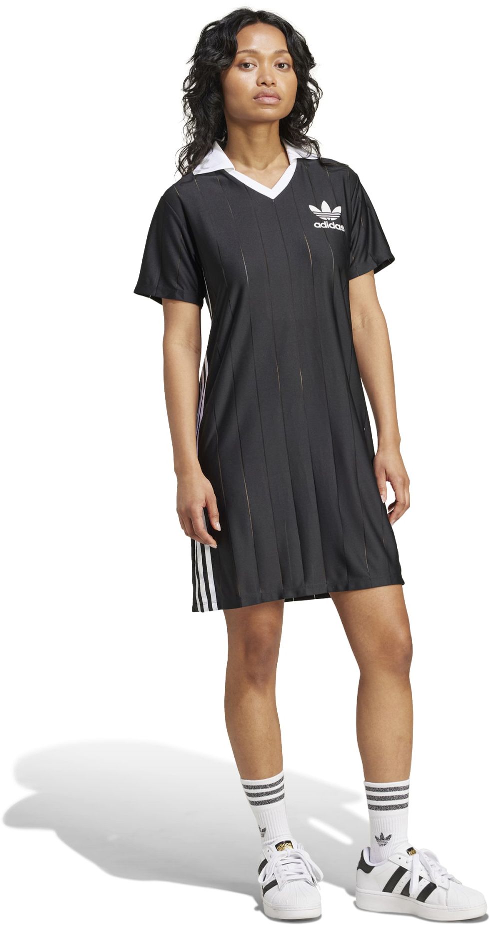 Embrace a relaxed yet stylish vibe with the Adicolor 3 Stripe Pinstripe Dress, an iconic addition to adidas Originals. Crafted from 100% recycled polyester knit, this loose-fitting dress combines sustainable fashion with timeless design. For a woman's wardrobe staple that celebrates heritage and modernity simultaneously, choose the comfort and versatility of adidas.