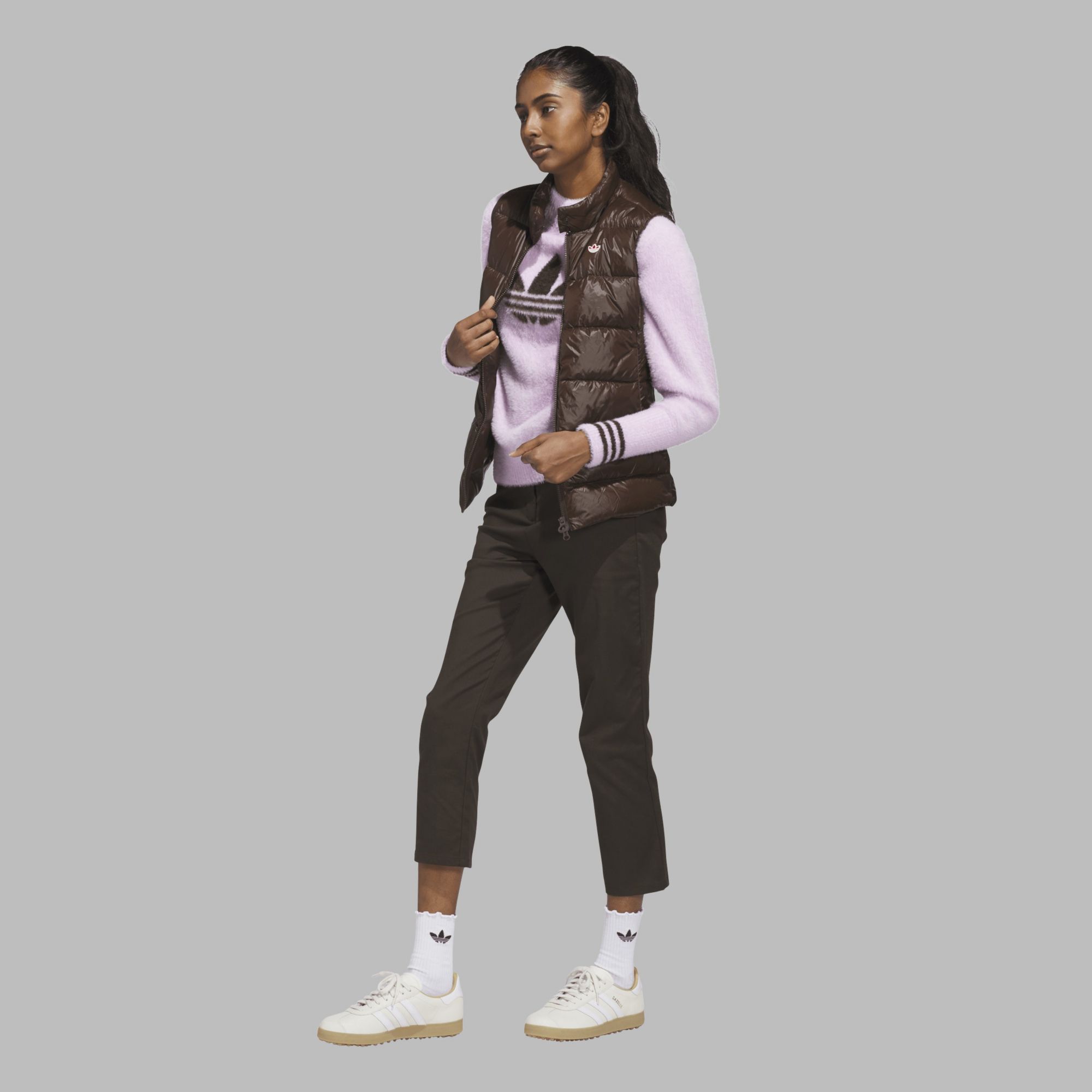 Elevate your golf game with the Originals Down Vest for women. This versatile piece is designed for both on and off the course, featuring a Regular Fit that is neither too tight nor too Loose Fit. Crafted with a high neck and a 2-way zipper, it offers weather protection and a classic look. Made in part with recycled materials, this vest combines performance with versatility, ensuring you stay comfortable and stylish during your game.
