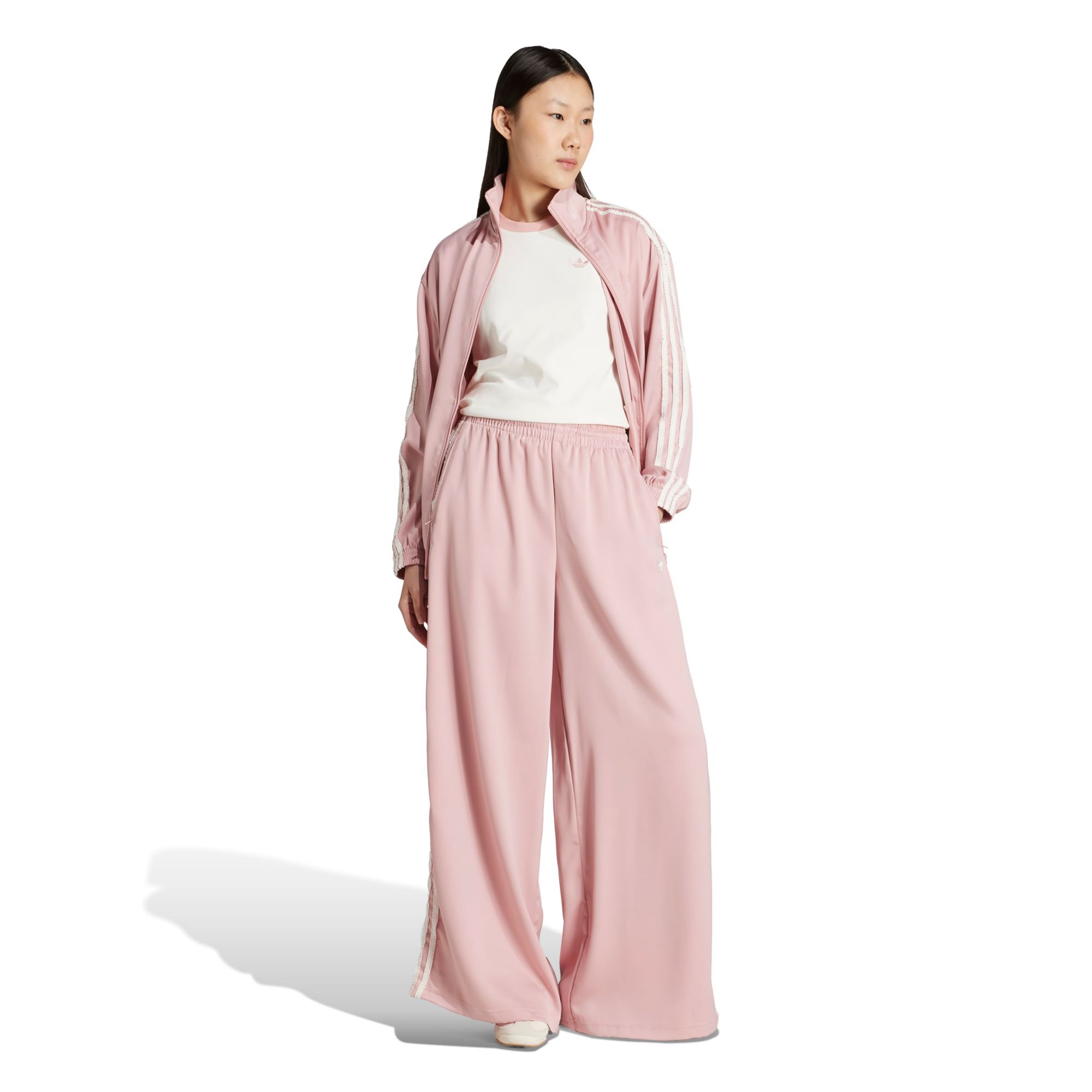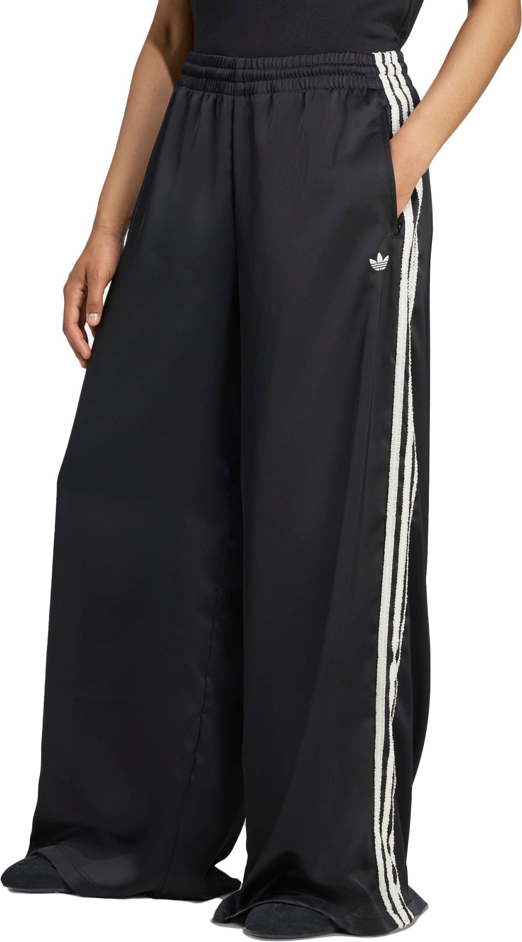 Sport and fashion effortlessly unite with these adidas wide leg pants. Crafted in silky smooth satin with playfully ruffled 3-Stripes down each side, they nod to sport heritage while embracing modern style. The wide-leg silhouette swishes as you move through your day — and it looks great with all your tanks and tees.