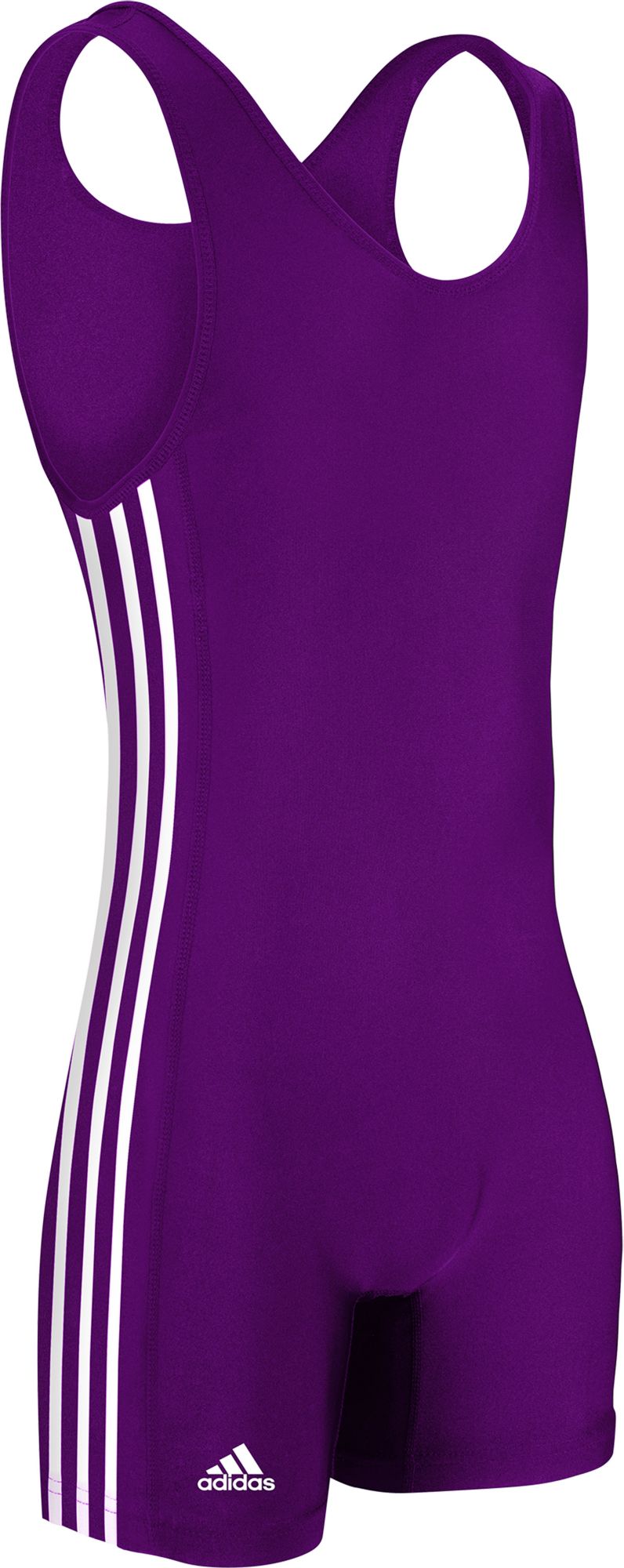 Put on the adidas® Three Stripe Wrestling Singlet for coverage without interference during your next match. This wrestling uniform is constructed of Nylon performance Lycra and features hemmed legs and neck and arm trim for a total comfort feel on the mat. The classic adidas® three stripe pattern on the seams stands out as you take down your opponent.