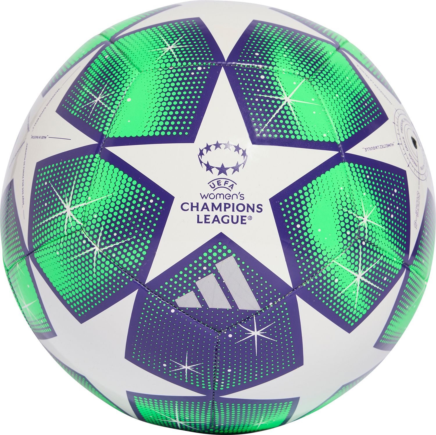 Celebrate the beautiful game with the Women's UEFA Champions League 24/25 Knockout Club Ball. Designed for recreational play, this machine-stitched ball combines a soft touch with high durability, thanks to its nylon-wound carcass and TPU surface.