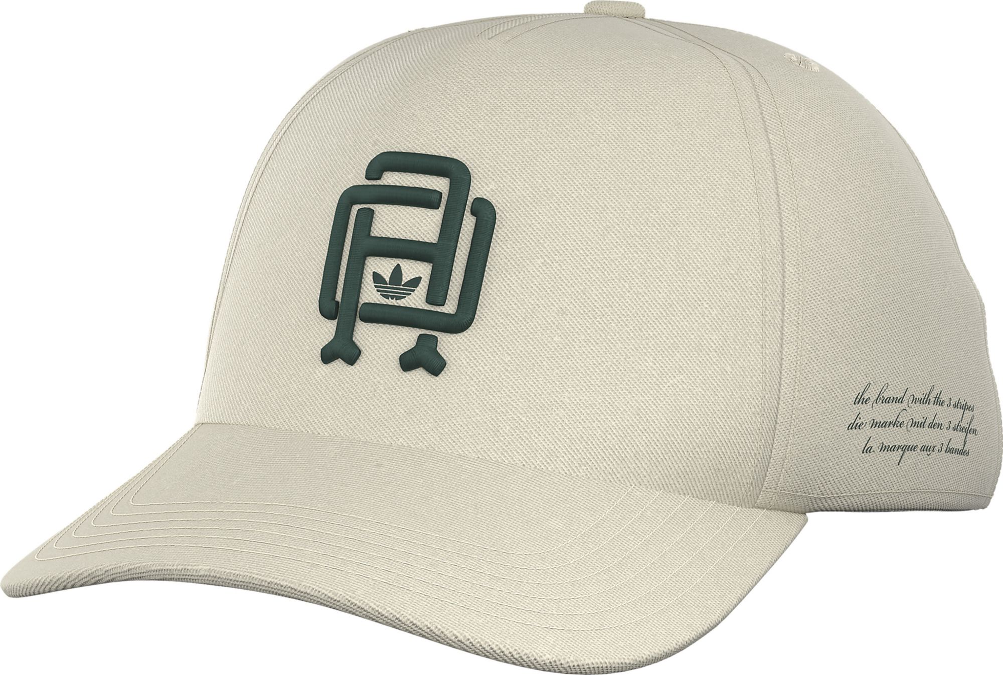 Made from a brushed cotton material, this adidas hat rocks a relaxed five-panel crown and a slightly curved brim. The strap and buckle in the back adjust to dial in the perfect fit. A multilingual "The Brand with the 3 Stripes" graphic accents the side.