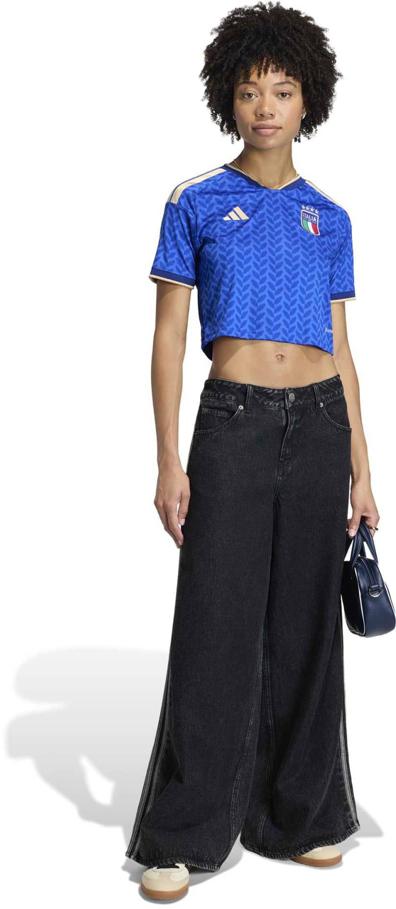 This is definitely the prettiest cropped jersey from the new release. It has golden stripes and embroidered details on the back and the beautiful royal blue represents the real "Scuderia Azzurra". I ordered a Medium, and I feel this style runs a little smaller than I expected (not enough for me to size up, though). I’d love to see more teams offered in cropped styles, since regular soccer jerseys are mainly designed for a masculine audience.