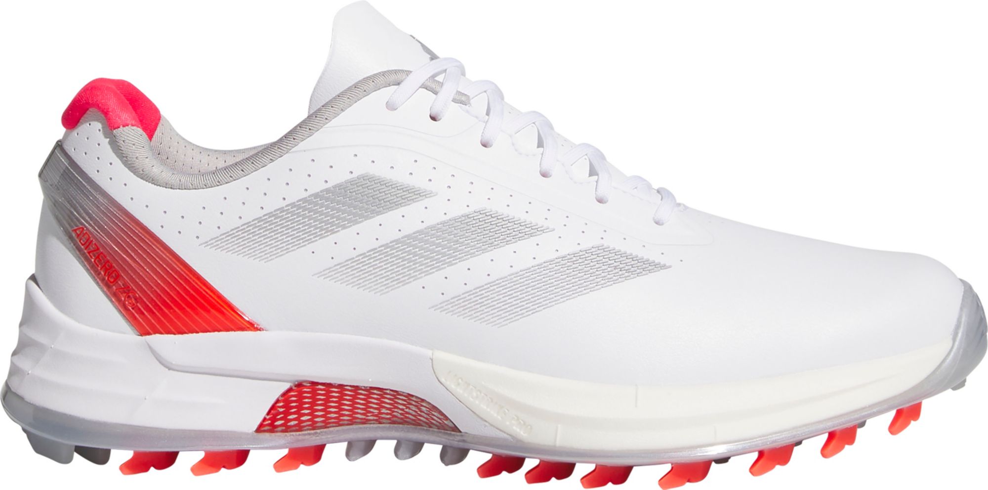 Chase your low score with these Adizero ZG Spikeless Golf Shoes from adidas. Lightweight yet packed with tech, they feature ultralight Lightstrike cushioning to support focused play, and a stability system for confident footing on greens and fairways. A waterproof upper keeps your feet dry in damp conditions.
