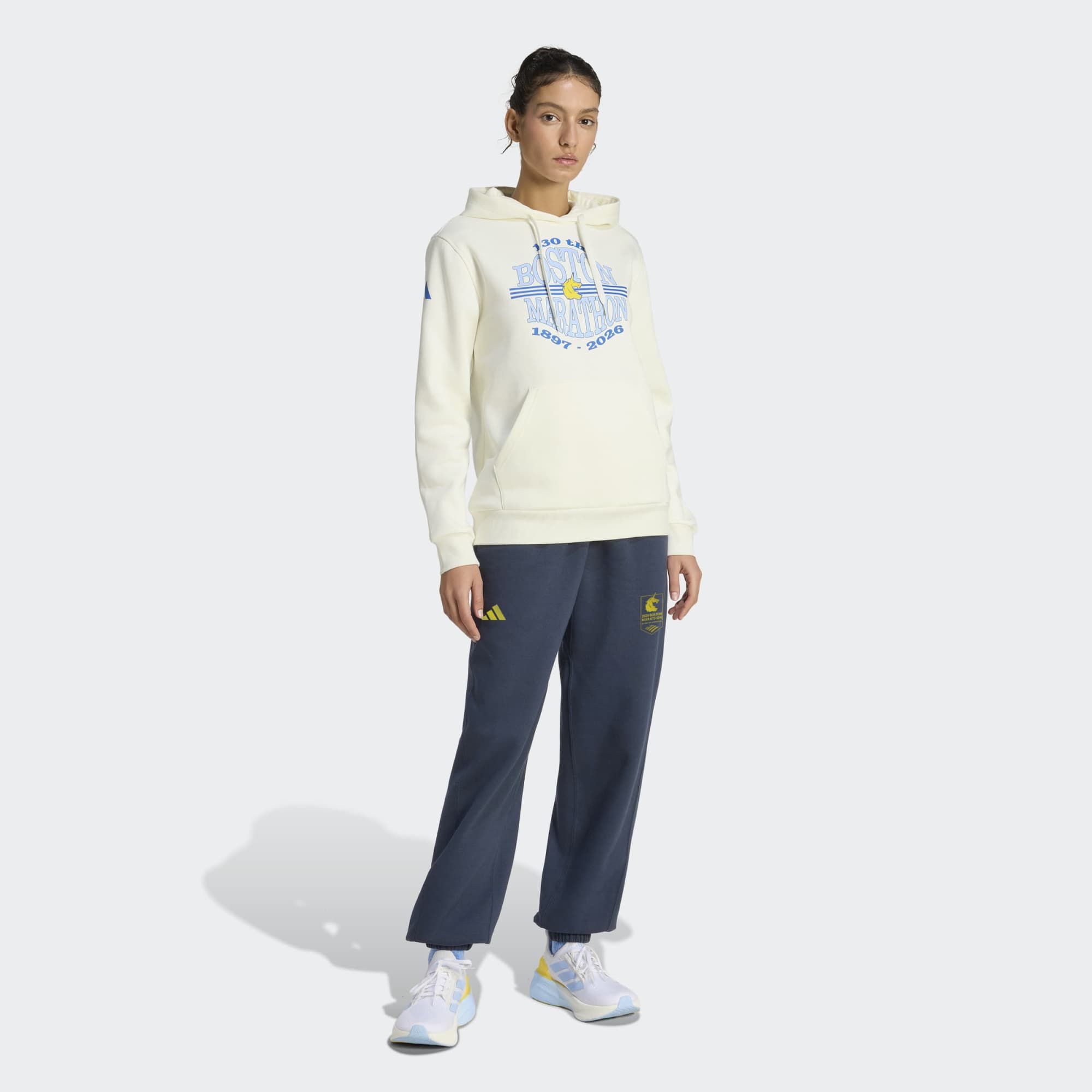 The Boston Marathon 2026 Graphic Hoodie is designed for those who value comfort and style in their athletic wear. This regular-fit hooded sweat is crafted from knit fabric, offering a cozy layer for your post-run relaxation or casual outings. Its classic design makes it a versatile piece, perfect for showcasing your marathon spirit in any setting.