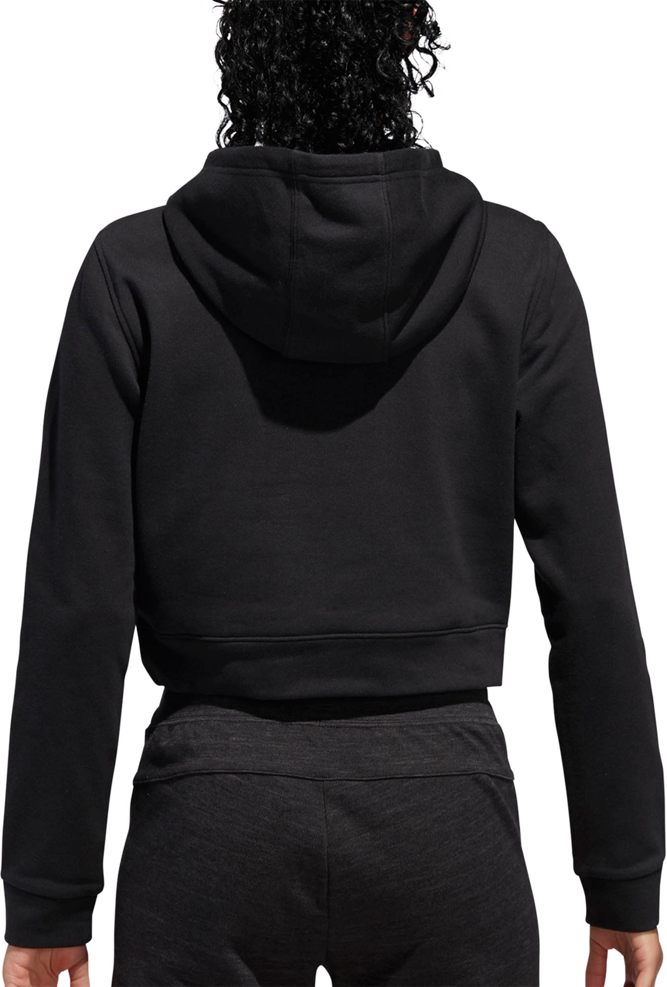 The perfect combination of fashion and function, layer on the adidas® Cropped French Terry Hoodie. Constructed of soft French terry fabric, this comfortable pullover has long sleeves and a fixed hood for protection against gusty winds. A cropped length ensures ease of movement while the adjustable drawcord at the hood provides personalized coverage. Complete with a large printed Badge of Sport on the chest, this casual hoodie will be your favorite style from workout to weekend.