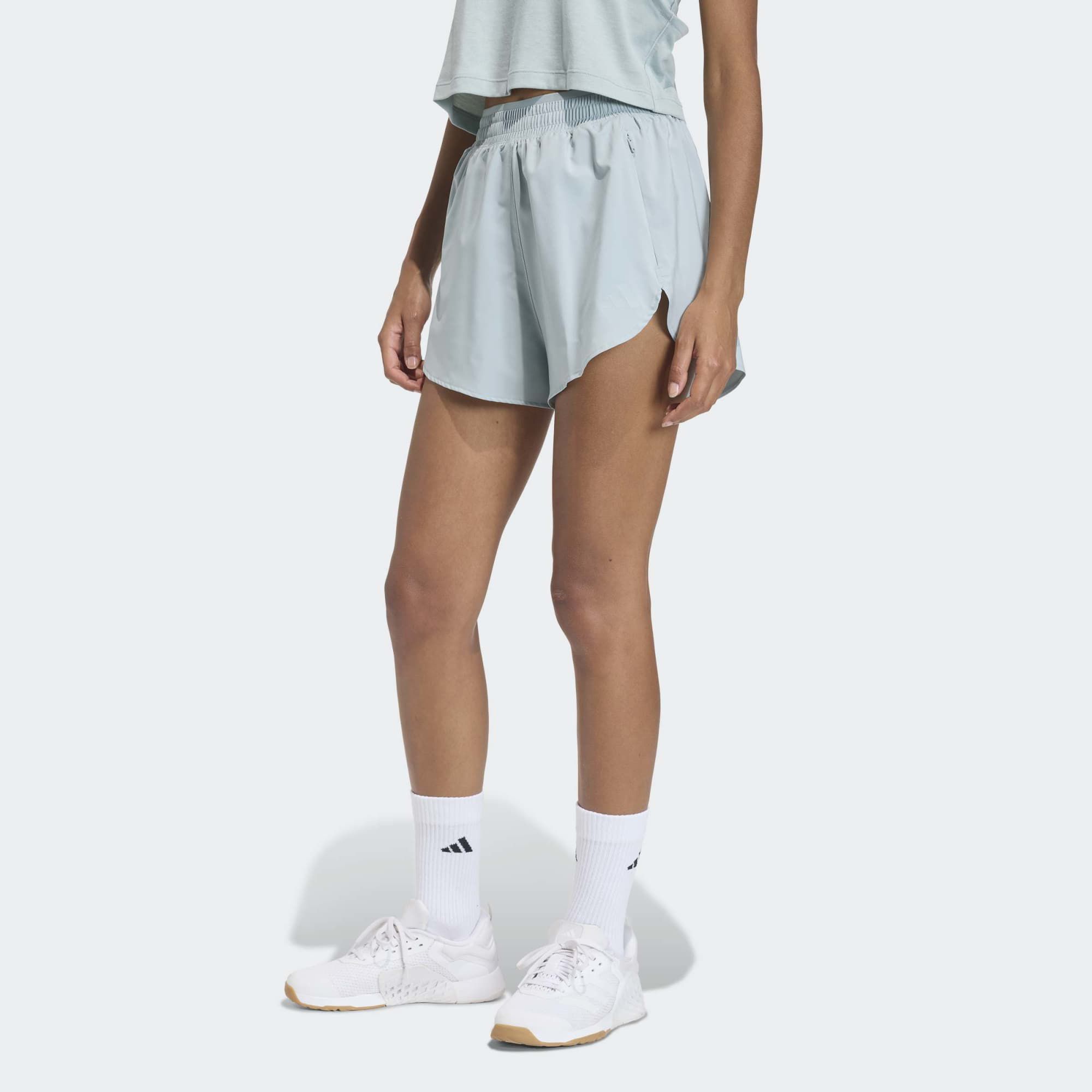 Designed for movement, these adidas shorts let you train without restriction. Four-way stretch fabric moves with you through every squat, lunge, and jump, while the inner brief provides coverage and comfort. Functional side slits allow your legs full range of motion. CLIMACOOL wicks and disperses sweat for cool, dry and distraction-free performance.