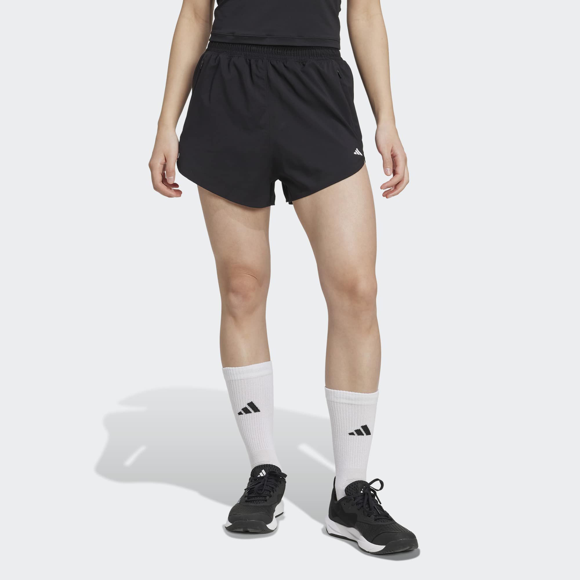 Designed for movement, these adidas shorts let you train without restriction. Four-way stretch fabric moves with you through every squat, lunge, and jump, while the inner brief provides coverage and comfort. Functional side slits allow your legs full range of motion. CLIMACOOL wicks and disperses sweat for cool, dry and distraction-free performance.
