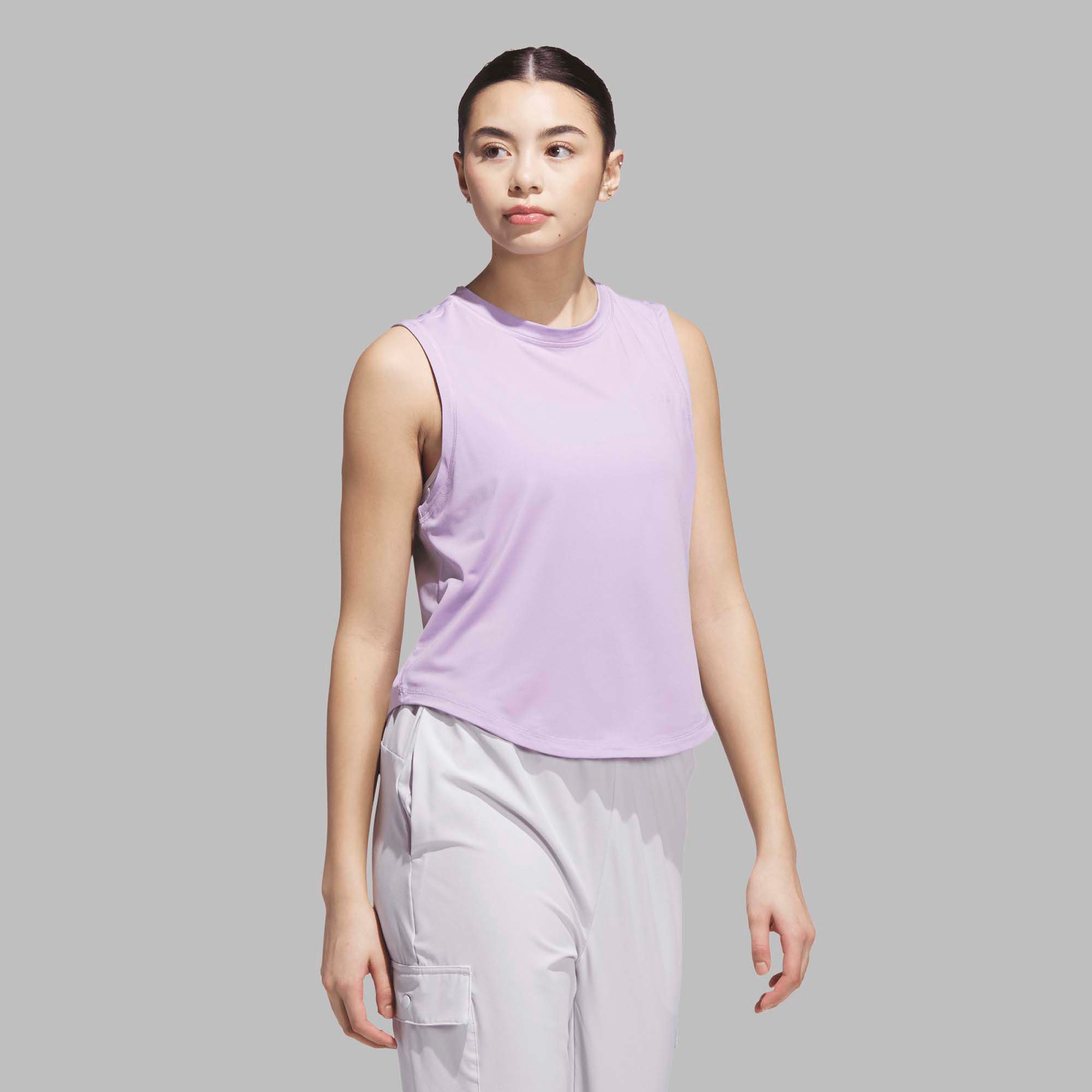 Step into your workout with confidence in the Designed for Train Workout Tank. This tank is a staple for your active wardrobe, offering a simple yet versatile design that complements your fitness routine. Its loose fit, flattering seam placements and smart cutlines allow you to move freely. Its scooped hem provides both style and comfort, making it suitable for intense training sessions or casual wear. The small, printed performance logo adds the finishing touch to this piece. Elevate your training sessions with the support of this performance-driven tank.
