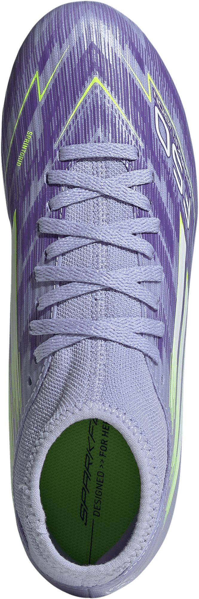 Designed for her. Light up the pitch in supportive F50 Sparkfusion boots created specifically for female athletes. Offering a truly comfortable fit, these adidas Club football boots team a soft, supportive Fiberskin upper and a specially shaped last. Underneath, the Sprintplate Fusion outsole is optimised for women's biomechanics to keep you agile on multiple surfaces.
