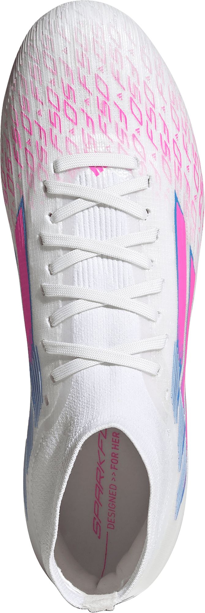 Designed for her. Light up the pitch in supportive F50 Sparkfusion boots created specifically for female athletes. Offering a truly comfortable fit, these adidas Club football boots team a soft, supportive Fiberskin upper and a specially shaped last. Underneath, the Sprintplate Fusion outsole is optimized for women's biomechanics to keep you agile on multiple surfaces.