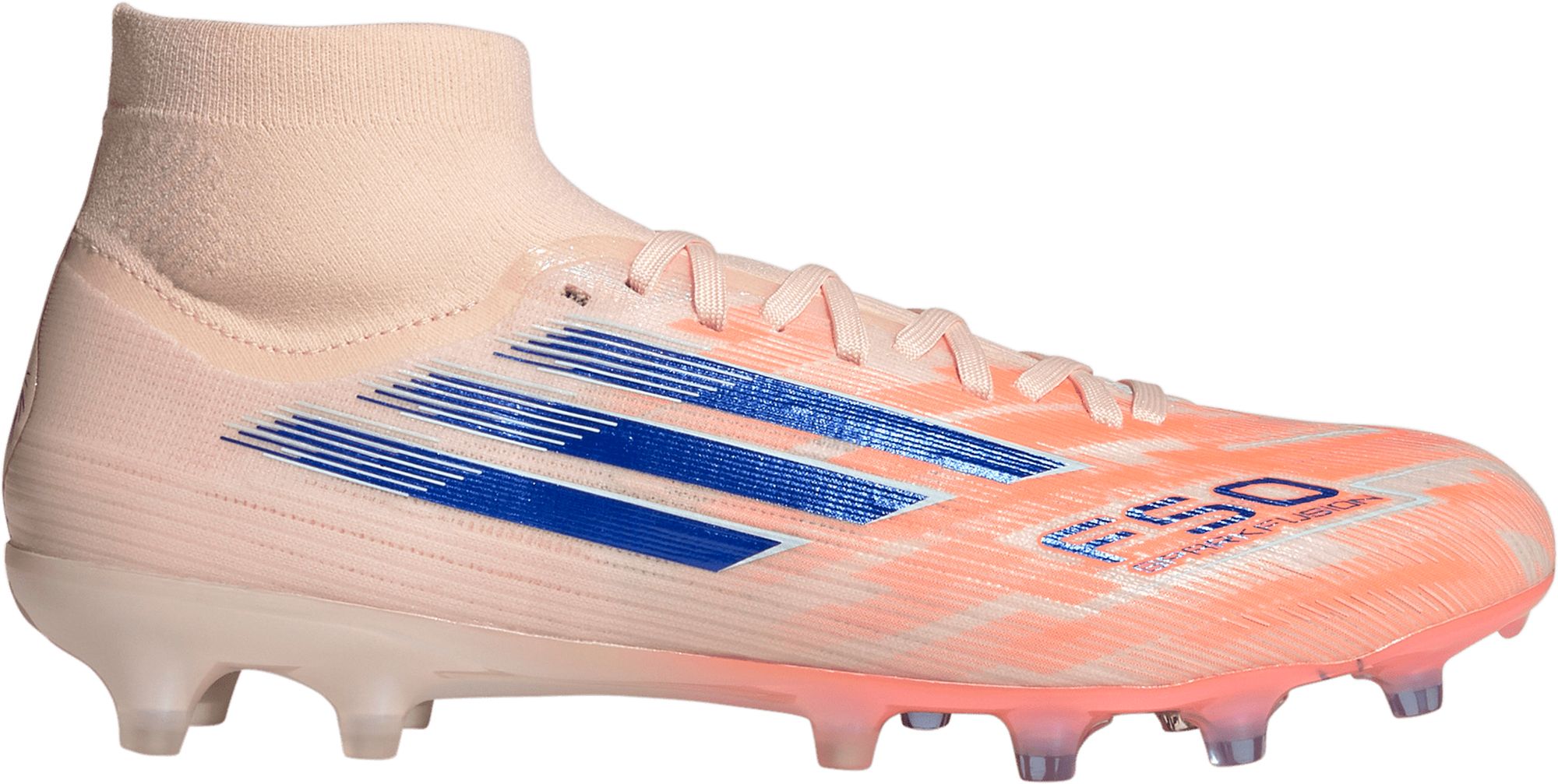 Designed for her. Light up the pitch in supportive F50 Sparkfusion boots created specifically for female athletes. Offering a truly comfortable fit, these adidas Club football boots team a soft, supportive Fiberskin upper and a specially shaped last. Underneath, the Sprintplate Fusion outsole is optimized for women's biomechanics to keep you agile on multiple surfaces.