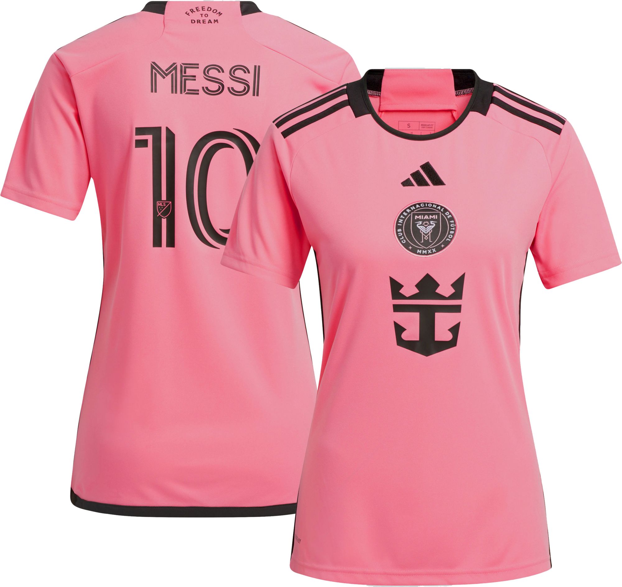Show your team spirit and support for one of the greatest soccer players with the adidas Women's Inter Miami CF 2024 Lionel Messi #10 Primary Replica Jersey. Featuring a lightweight, feminine, and athletic fit with a sleek raglan design, this jersey ensures you stay comfortable while cheering on your favorite team. The AEROready moisture-wicking fabric keeps you dry and confident, whether you're on the field or in the stands, while the iconic team crest and player details show off your Inter Miami CF pride.