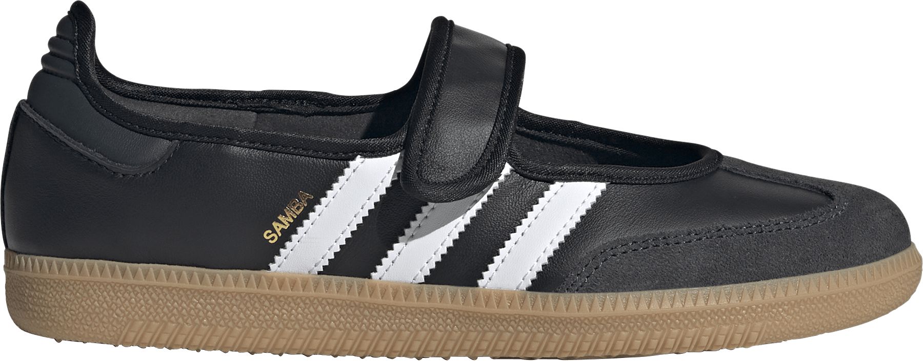 The adidas Samba shoes get a modern makeover, blending into a trendy Mary Jane aesthetic. With a smooth leather upper and signature serrated 3-Stripes, these low-profile shoes offer a fresh take on a heritage style. The smooth satin lining gives the shoes a luxe feel, and a grippy gum rubber outsole keeps the look classic. From indoor trainer to streetwear staple, the Samba's legacy continues to grow.