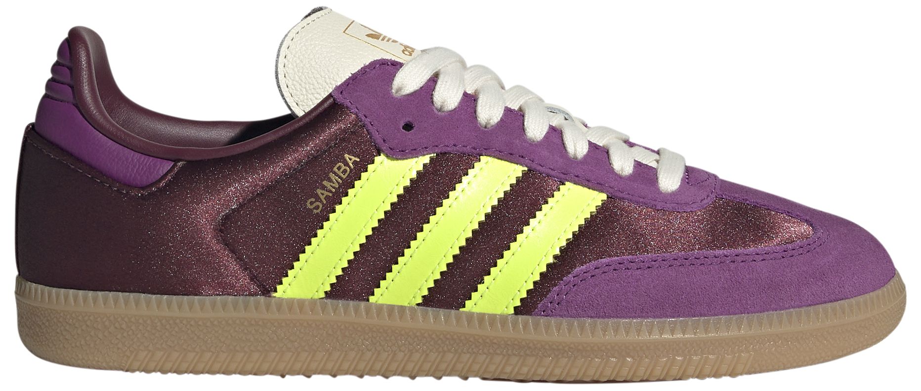 Rediscover the timeless charm of a classic with the adidas Women's Samba OG Shoes. Featuring a low-profile silhouette that honors the legacy of the Samba icon, these sneakers boast a full-grain leather upper enhanced by gritty suede and gold foil details. Complete with synthetic leather lining and a gum rubber cupsole for durability and traction, they offer a perfect blend of style and comfort for any casual occasion.