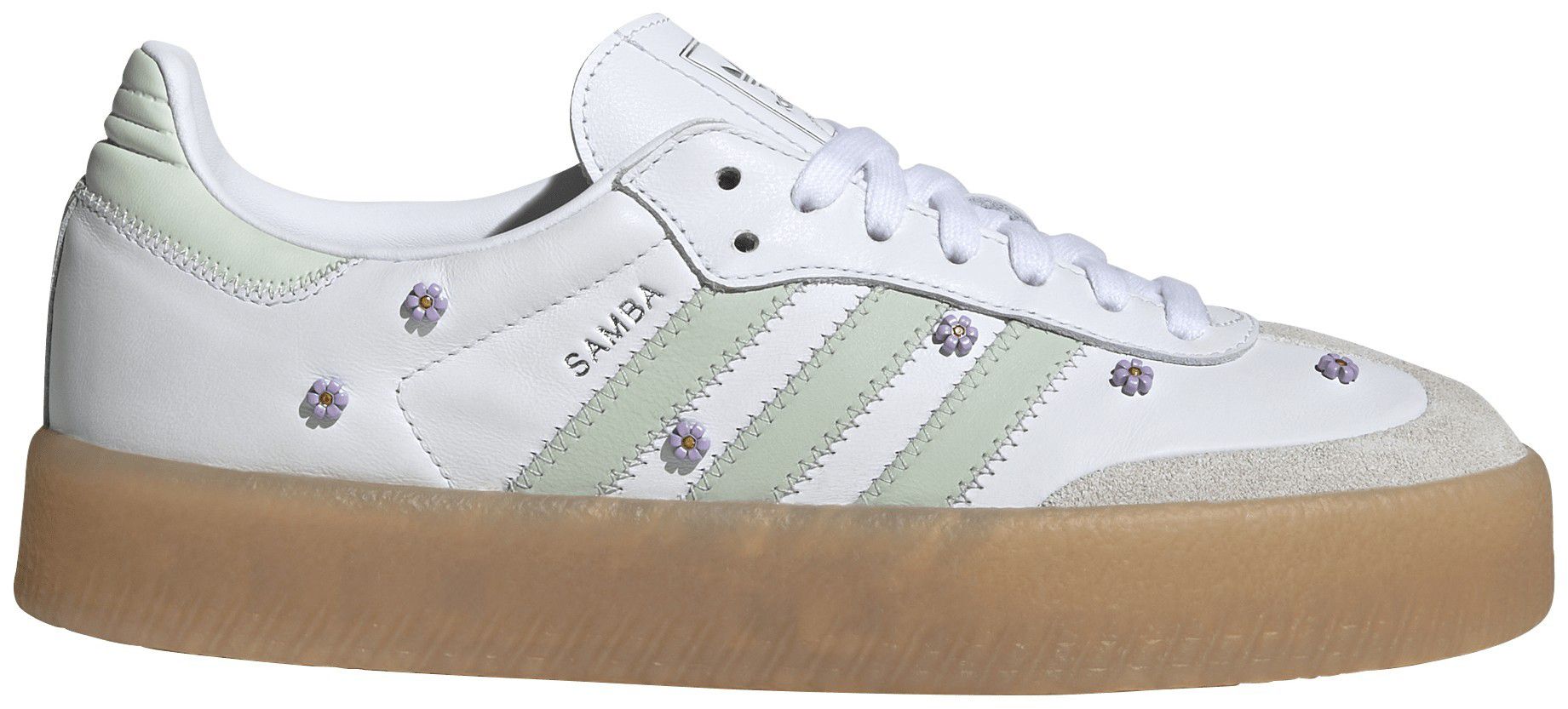 Designed with a modern twist on an iconic silhouette, these adidas Women's Sambae Shoes feature a smooth nubuck and leather upper complemented by premium embroidered 3-Stripes. Subtle details such as a stitch-and-turn toe cap and a translucent gum rubber outsole add both style and functionality. Perfect for casual wear, these shoes offer a comfortable fit with a lace-up closure, making them an ideal addition to any wardrobe.
