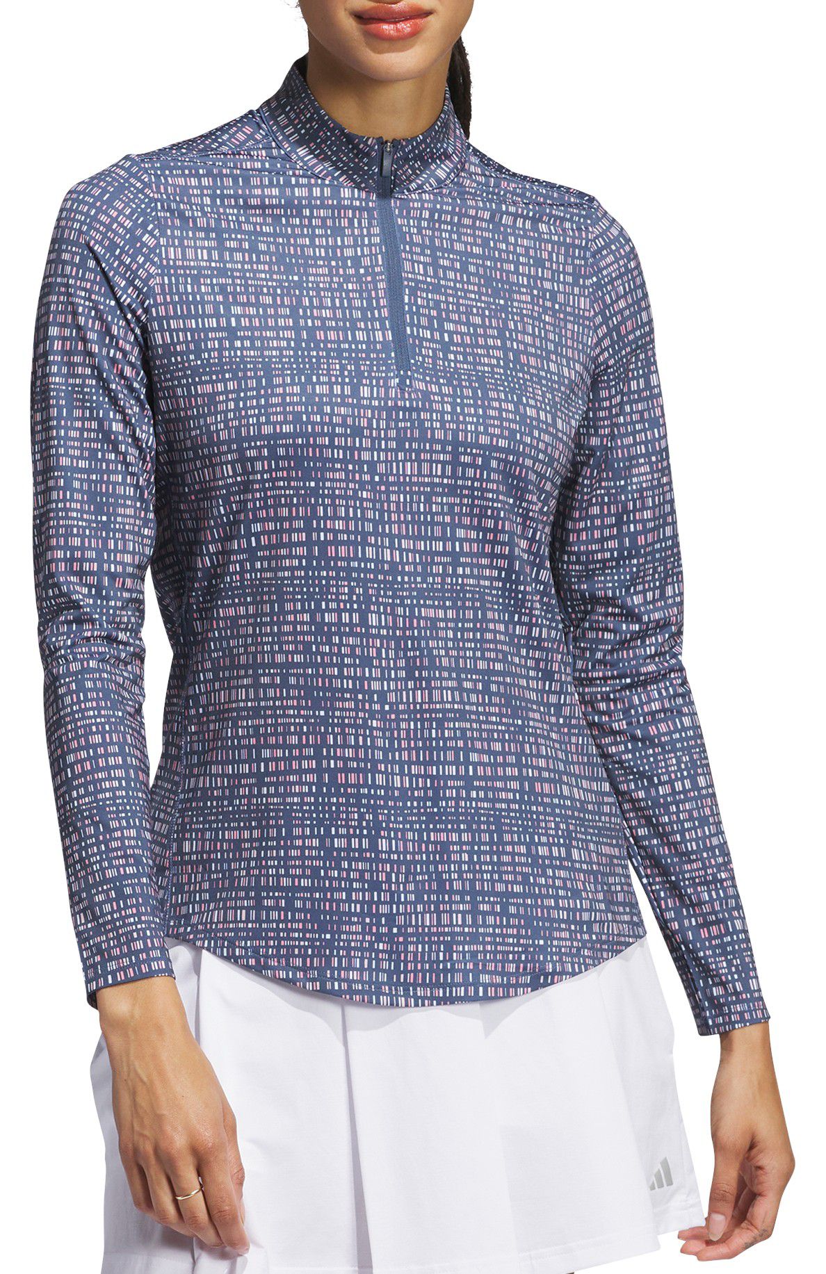 Comfort carries the day. This adidas Ultimate365 golf shirt is engineered for full mobility thanks to four-way stretch fabric. The single jersey feels lightweight and comfy throughout your round, while the quarter-zip design adds coverage that you can Customise. An allover print adds lively style that works well for casual rounds and tournament play. This product is made with at least 70% recycled materials. By reusing materials that have already been created, we help to reduce waste and our reliance on finite resources and reduce the footprint of the products we make. A stretchy golf top made in part with recycled materials.