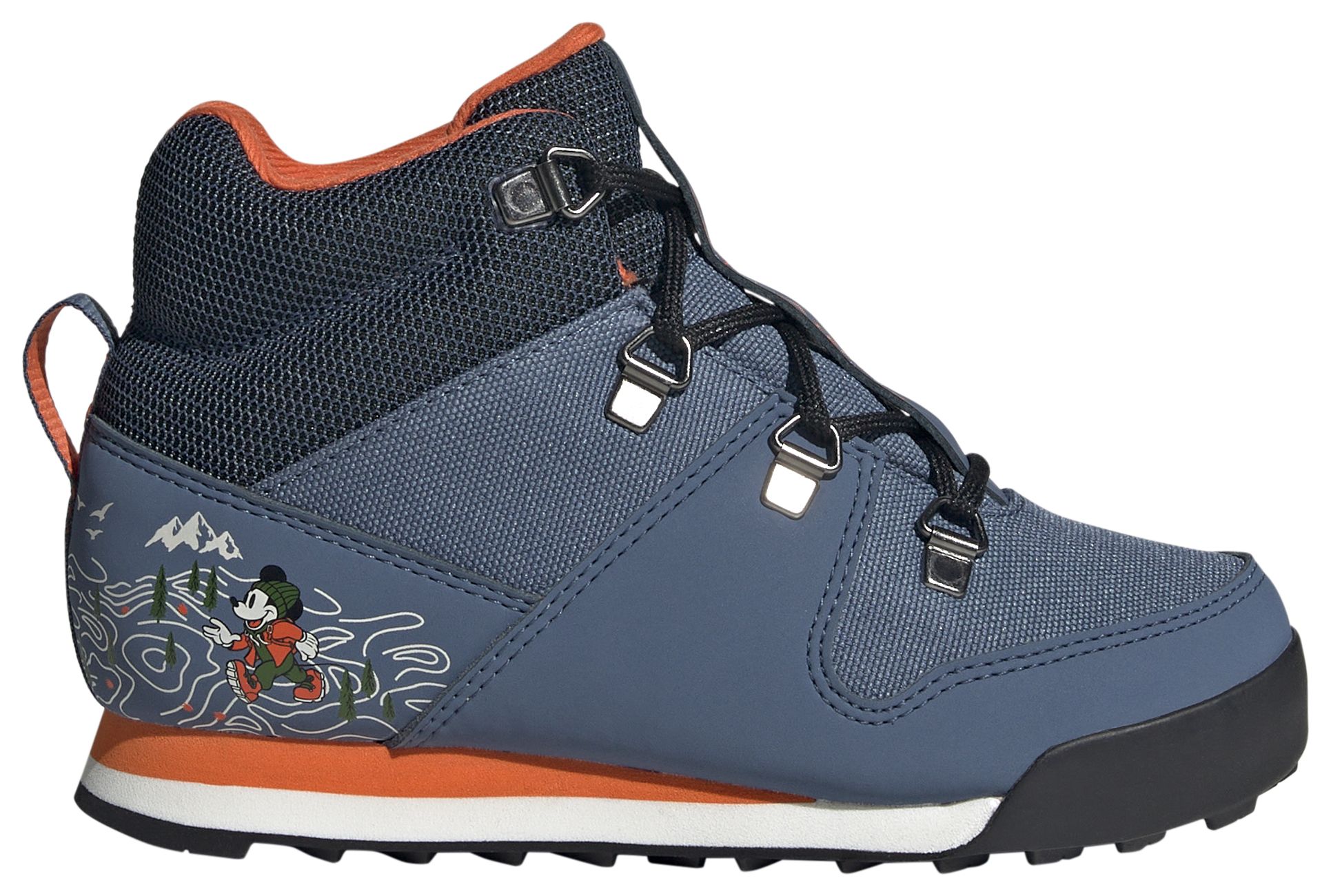 These hiking shoes feature a unique urban take on a classic silhouette, blending synthetic and textile materials for maximum comfort and durability. Equipped with PrimaLoft® Parley insulation and winter lining, they promise warmth even in the coldest conditions while reflective elements ensure visibility. With an outdoor-inspired graphic from our Walt Disney collaboration, these lace-up shoes are perfect for city strolls or countryside adventures.