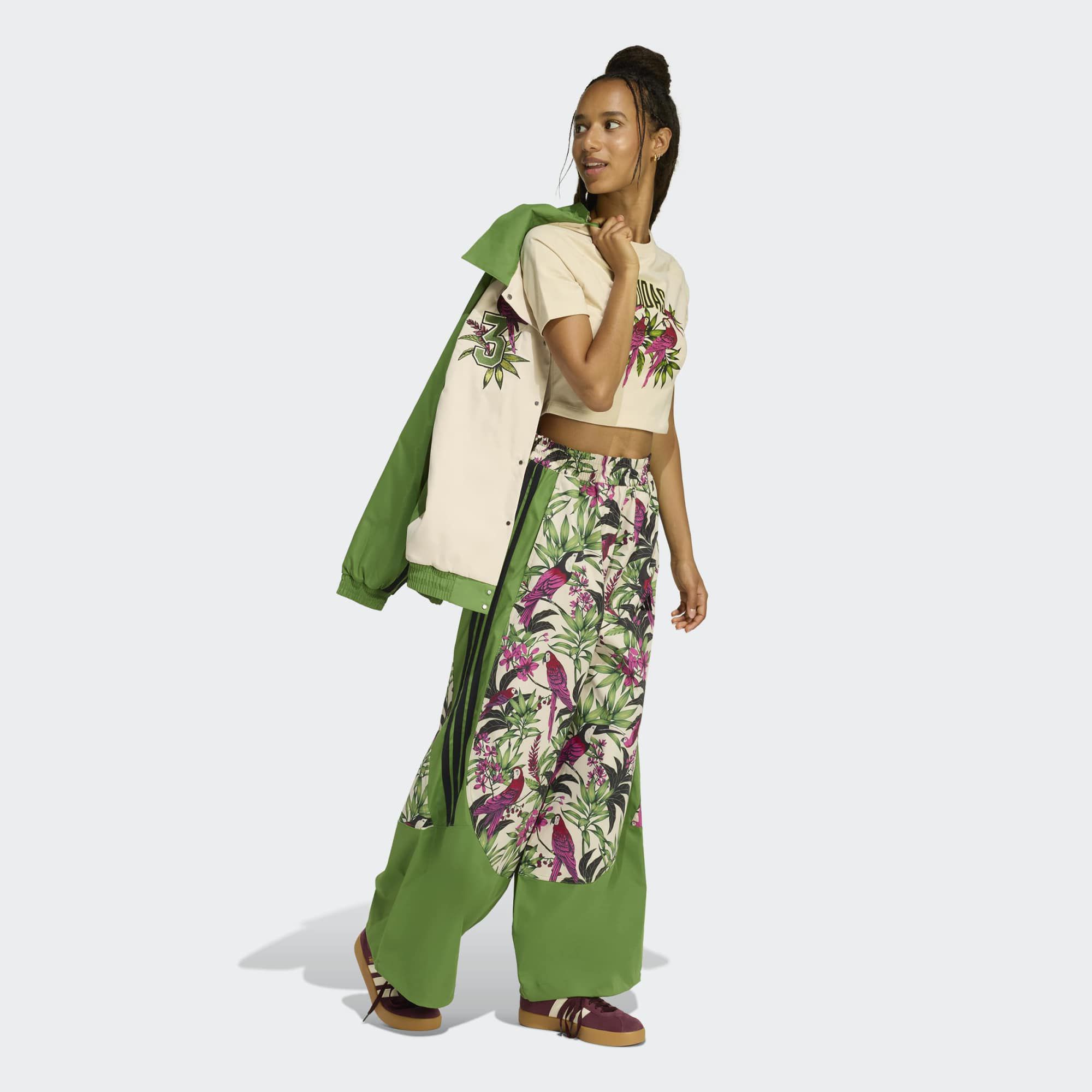 Sport meets art with the adidas x Farm Rio Graphic T-Shirt Cropped. This t-shirt is a vibrant celebration of the colorful murals and dynamic spirit found on city basketball courts, reimagined for sportswear and training. The loose fit and bold graphics make it a standout piece, and a fantastic choice for those who embrace creativity and unity in their style. Crafted from a single jersey fabric, it offers comfort and flexibility, making it suitable for everyday wear or active pursuits. With a nod to the power of sport to unite communities, this adidas t-shirt is more than just a piece of clothing. It's a statement of individuality and optimism.