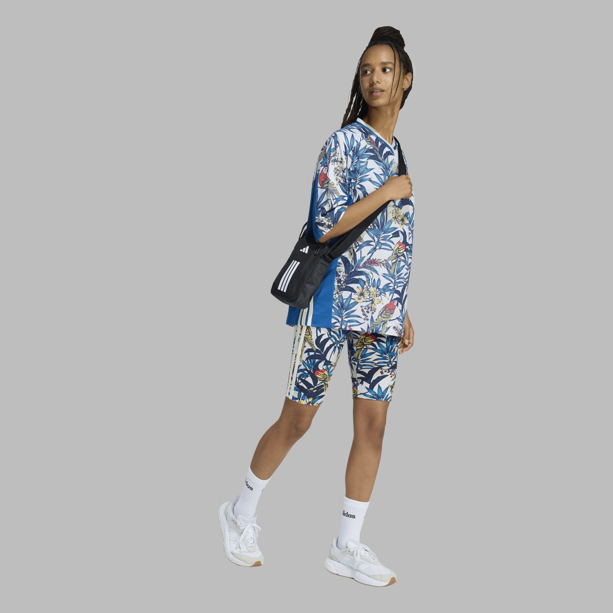 The adidas x Farm Rio Premium T-Shirt is where vibrant culture meets sportswear. Inspired by the colorful murals and street art that grace urban basketball courts, this t-shirt is a celebration of creativity and unity. Whether you're hitting the gym or exploring the city, wear this t-shirt for a stylish look that stands out.