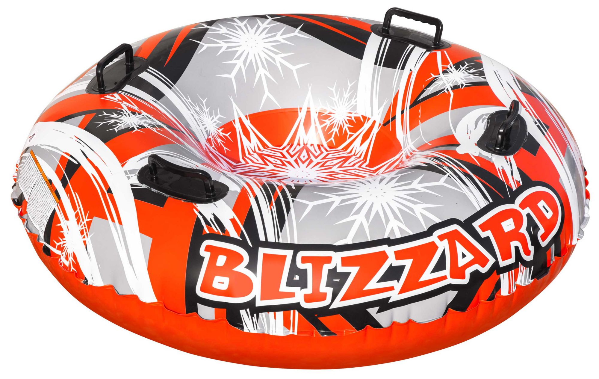 Fly down the neighborhood hills with the Airhead® Blizzard Snow Tube. Made for one rider at a time, this inflatable snow tube boasts durability, plus four easy-grip handles for safe riding all season long. The Blizzard is crack-resistant for tough, long-lasting construction in temperatures as low as -25°.