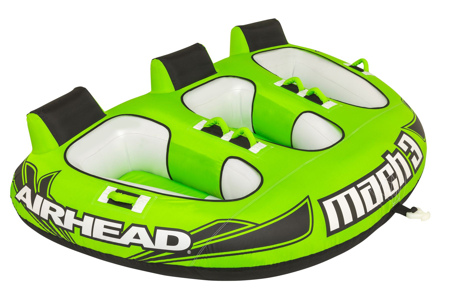 Mach 3 is an adaptable family-friendly tube that offers fun for all ages and experiences. For young or timid riders, the cockpit design creates a feeling of security to boost confidence on the water.Thrill-seekers or adult riders can enjoy the Mach 3 tube at higher speeds for a surge of adrenaline. Inflated floors provide cushioned seating while backrests make it easy to enjoy a wild ride. No matter who’s riding this inflatable water tube, six neoprene handles with knuckle guards make it easy and convenient to stay on.