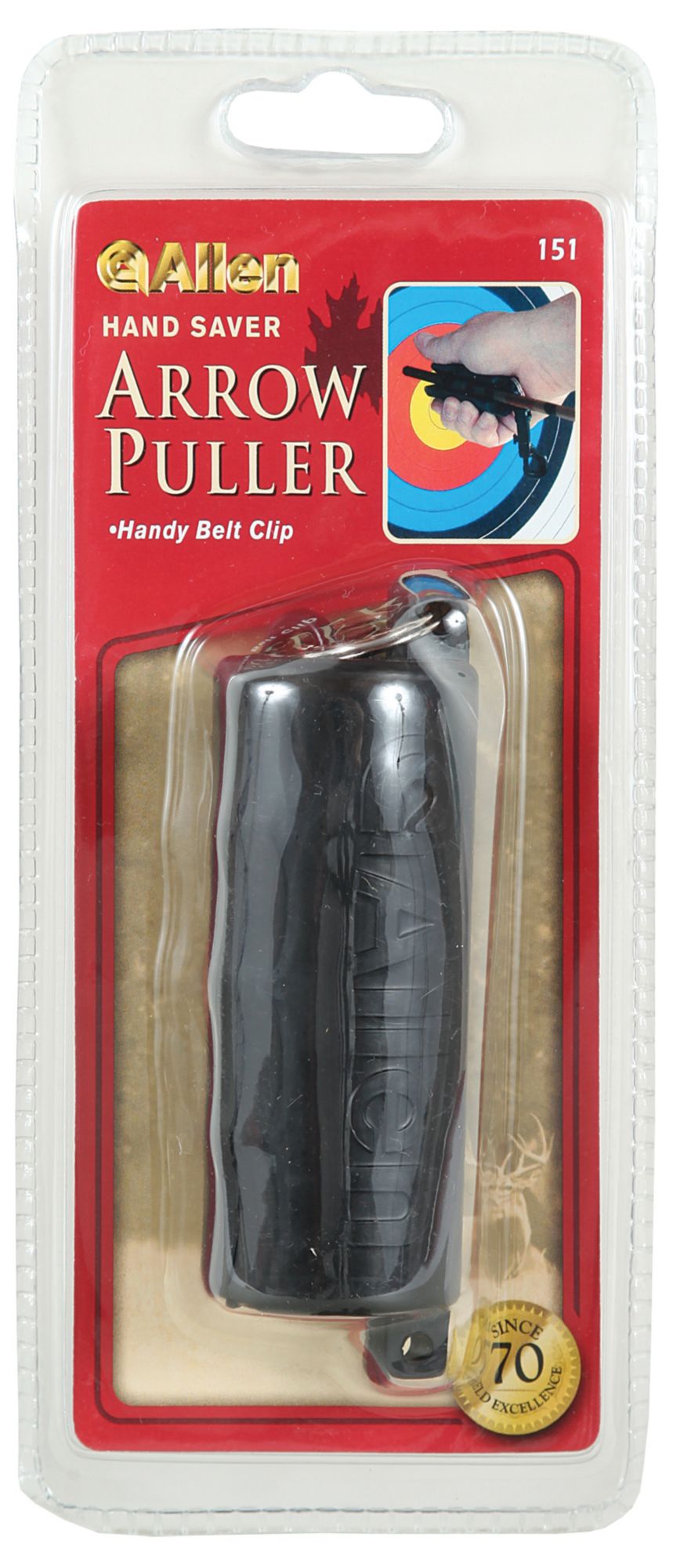 This Allen ® Arrow Puller is an essential and handy tool for any archer. Ideal for hunting or target shooting, this tool easily grips any arrow’s shaft and eliminates the possibility of blisters. Its convenient snap cup makes it easy to attach to any belt loop or D-ring making it a great tool for hunters on the go.