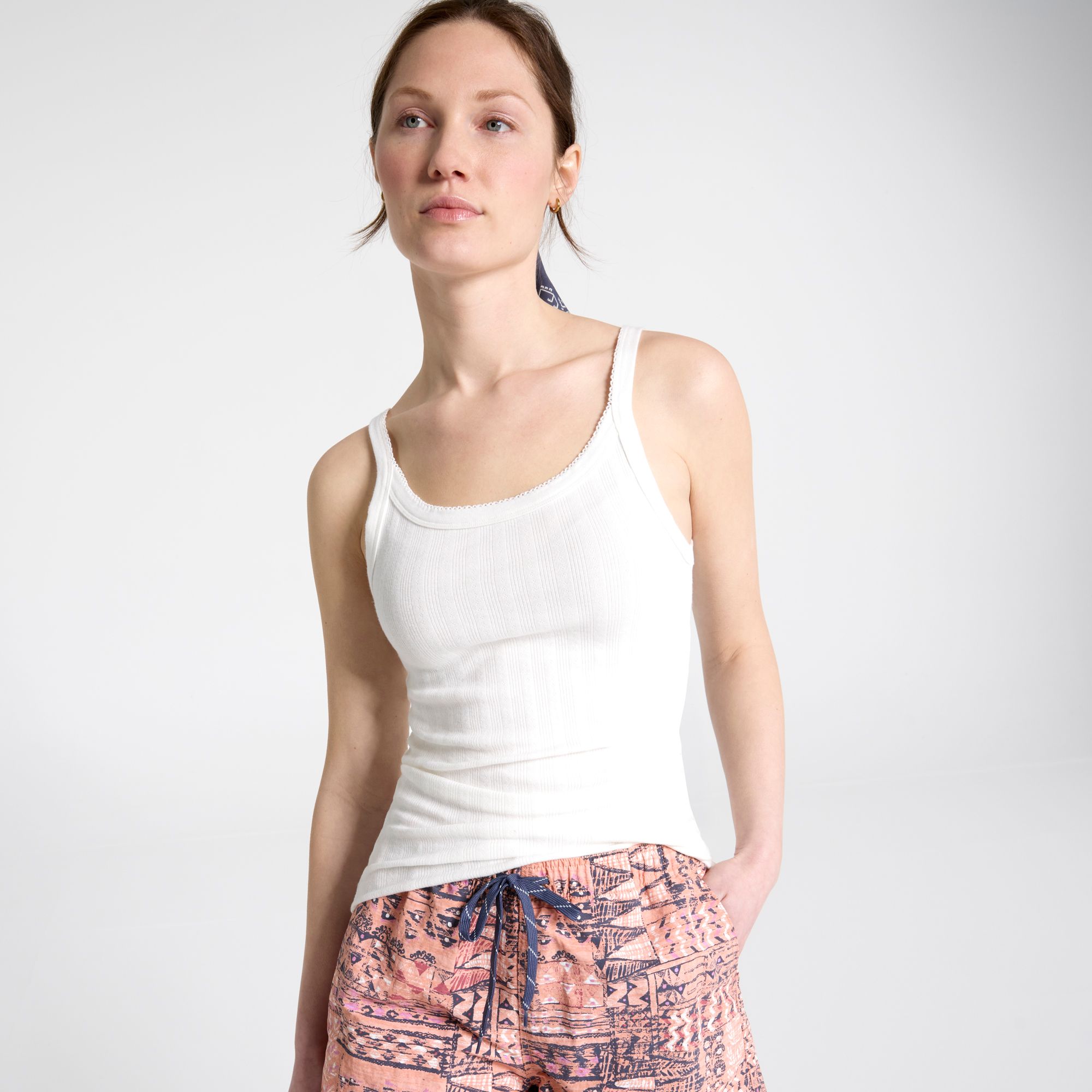 Pointelle’s naturally cooling properties take center stage in this outdoor-ready tank top. The slim fit sits next-to-skin and the airy pre-washed fabric vents excess heat. The straps are also a little thicker, a mindful detail that helps them stay in place underneath packs and outer layers.