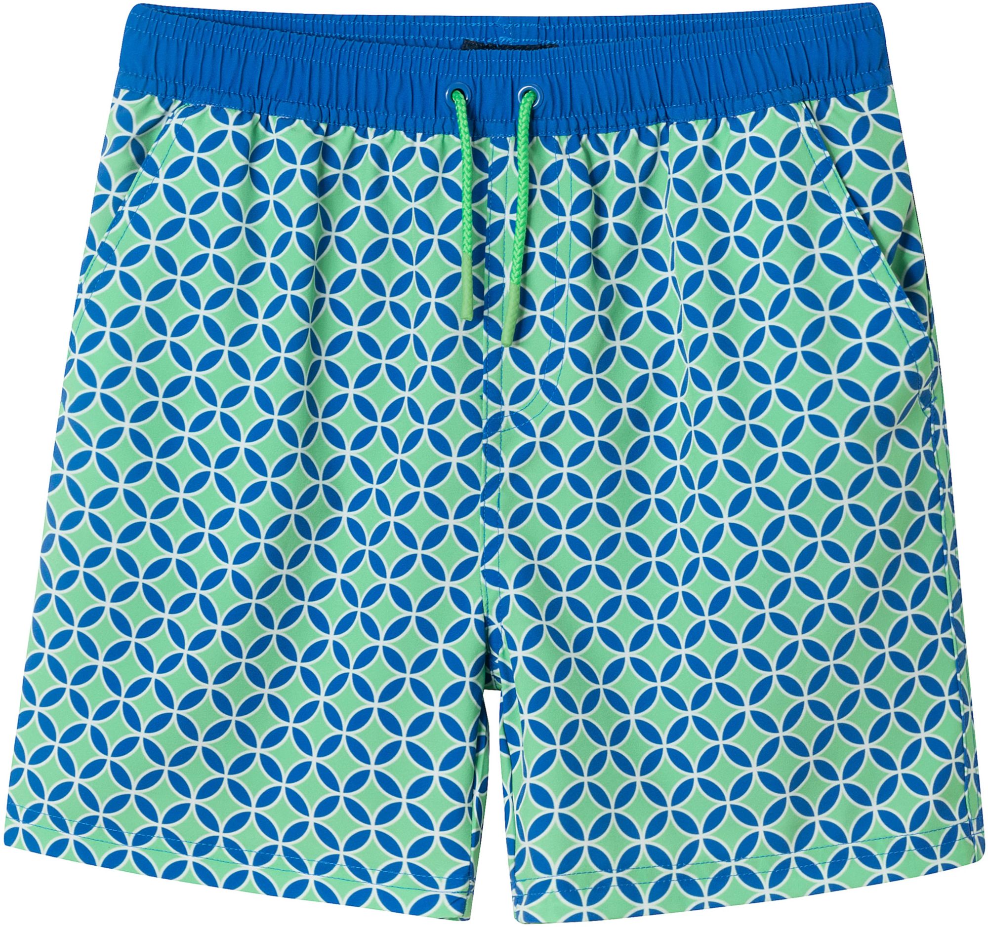 Make a splash with these bold Green Geo Print Swim Trunks, designed for all-day comfort and style. Featuring an eye-catching geometric pattern and quick-dry fabric, they’re perfect for beach trips, pool parties, or backyard water fights. The elastic waistband with contrast drawstring offers a secure, adjustable fit that’s ready for summer fun.