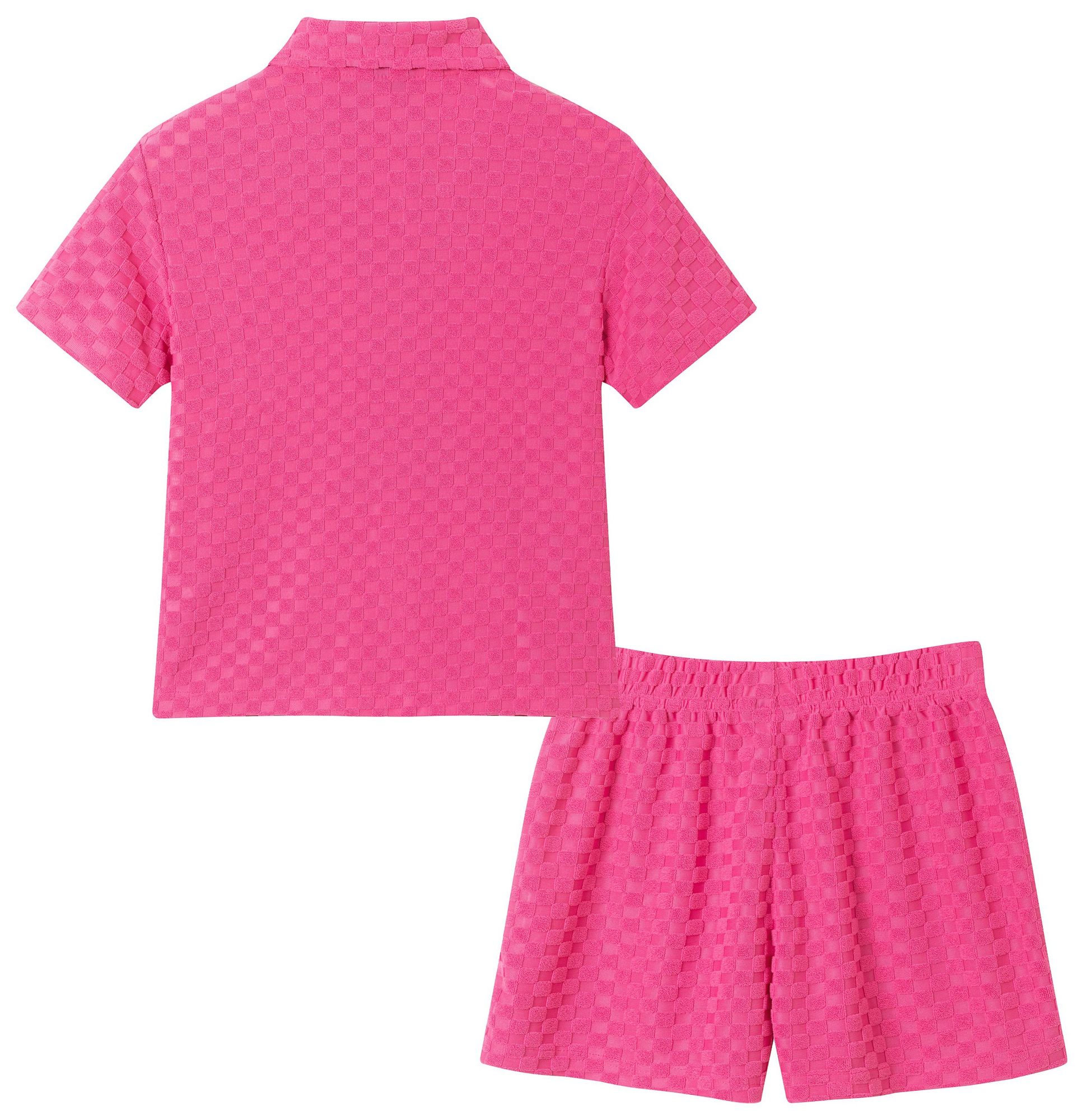 Perfect for any occasion, this outfit features a playful check design and comfortable terry fabric. Let your little one shine and express their unique personality with this chic set.