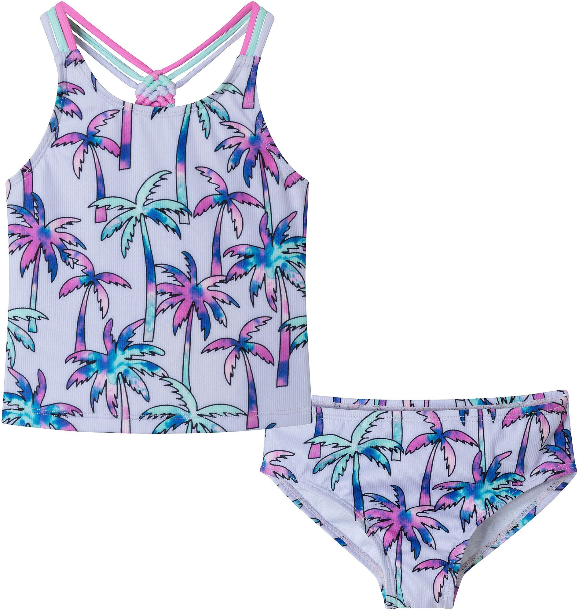 Bring tropical vibes to her swim days with this palm tree two-piece set! Featuring a strappy tank top and matching bottoms with a colorful, vibrant print, this swimsuit is perfect for splashing, lounging, and enjoying sunny adventures in style.