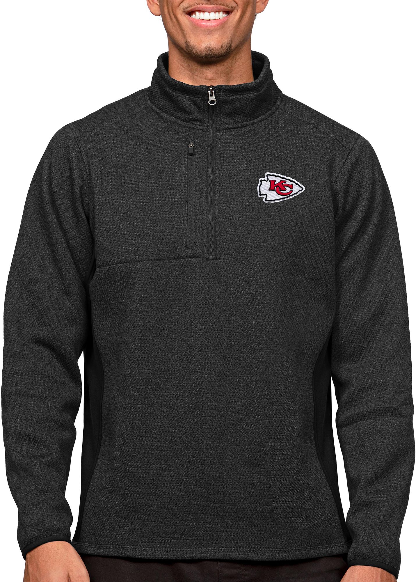 Antigua Men's Kansas City Chiefs Course Black Heather Quarter-Zip Pullover Jacket