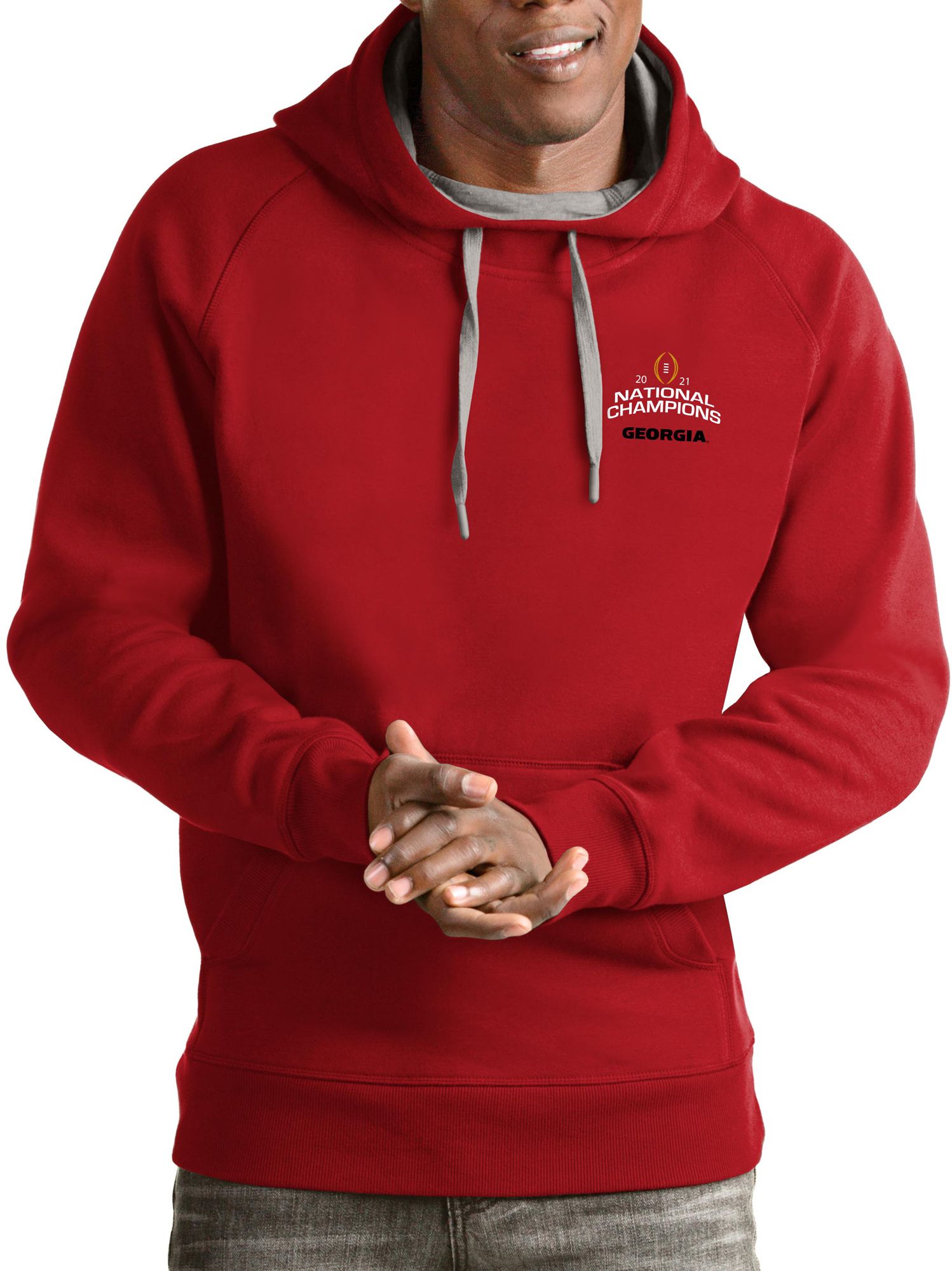 Antigua Men's 2021 National Champions Georgia Bulldogs Red Victory Pullover Hoodie