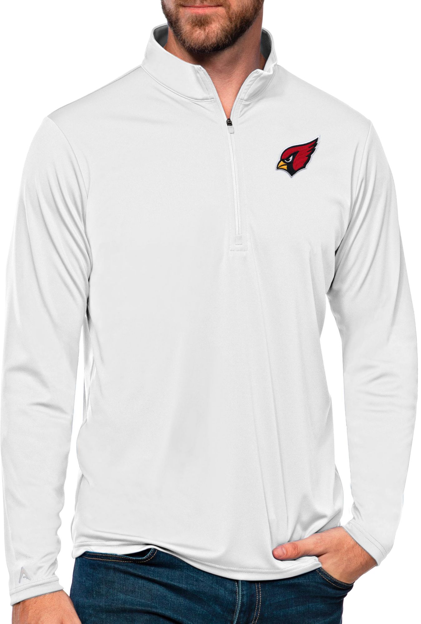 Antigua Men's Arizona Cardinals Tribute White 1/4-Zip Pullover