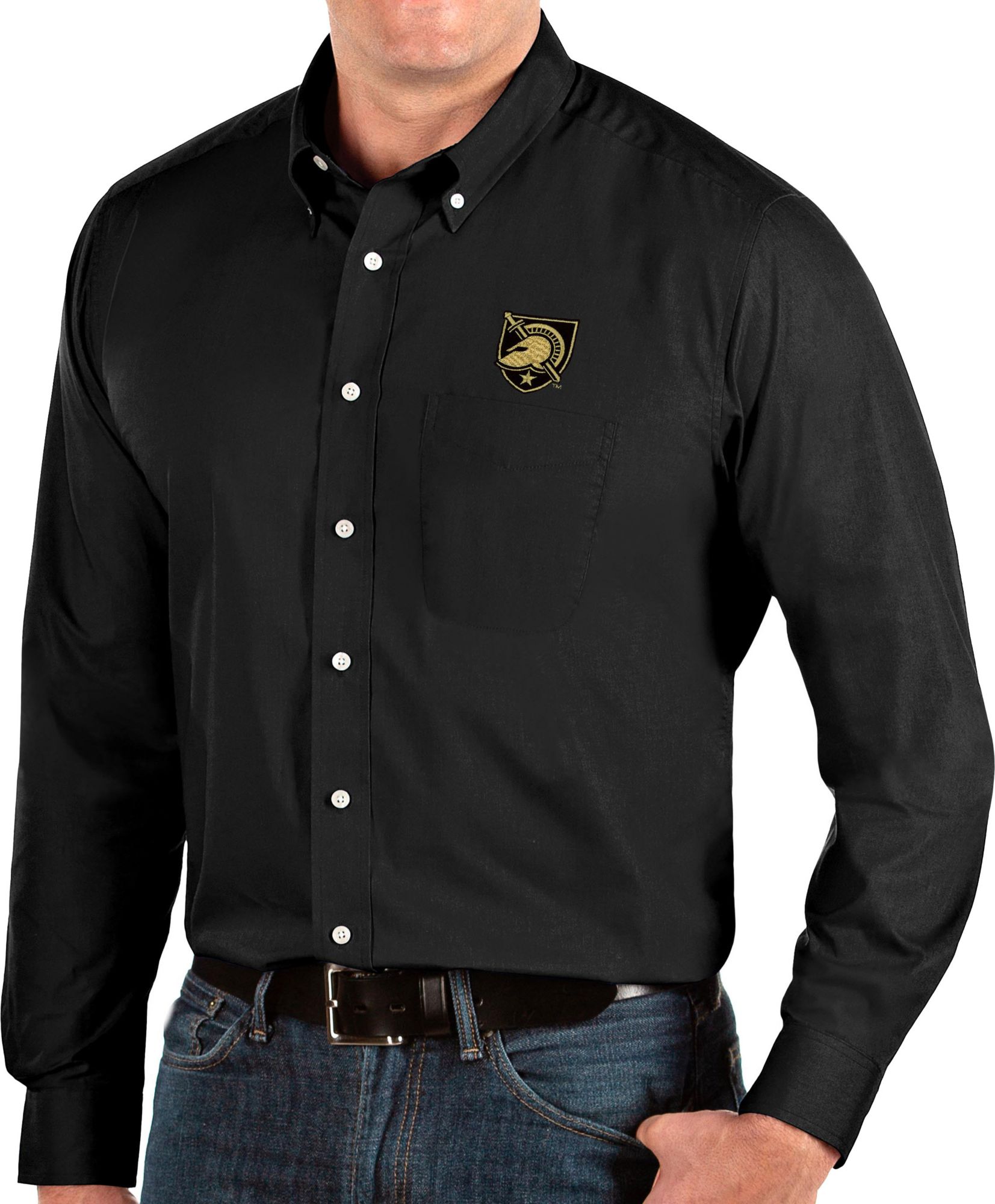 Antigua Men's Army West Point Black Knights Dynasty Long Sleeve Button-Down Black Shirt