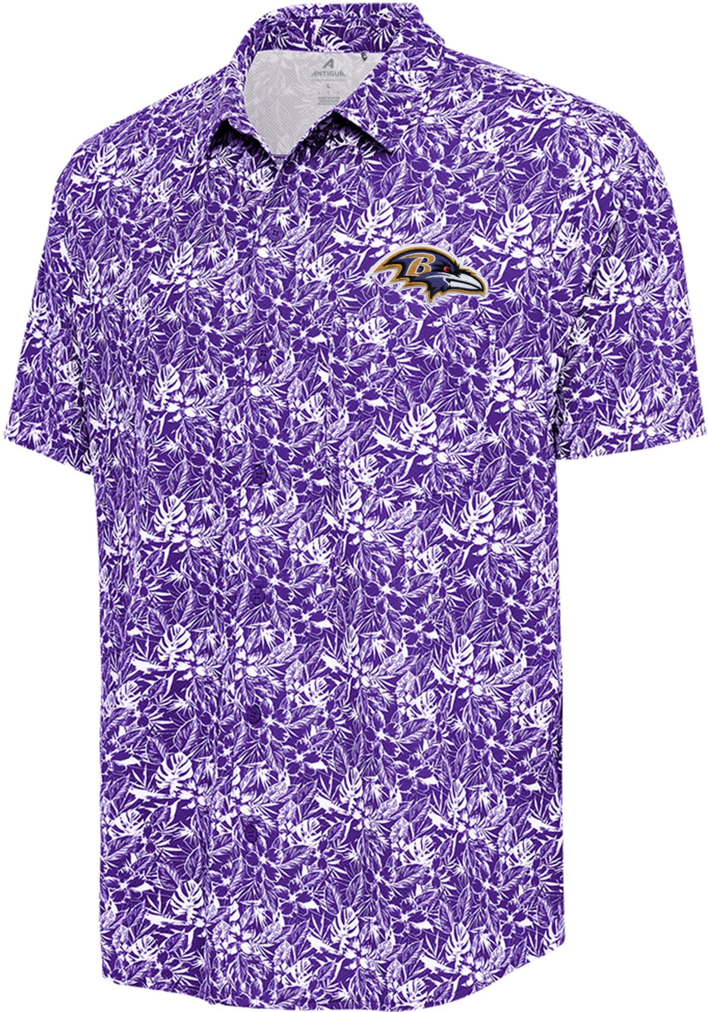 Antigua Men's Baltimore Ravens Purple Resort Button Down Short Sleeve Shirt